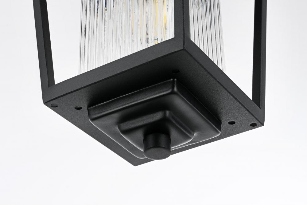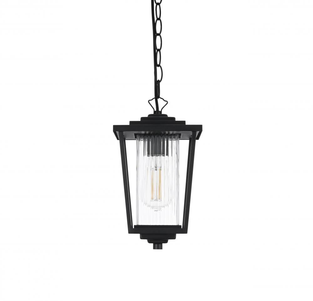 Illuminate your outdoor spaces with the timeless elegance of this outdoor pendant light. The lantern-style fixture features a sleek black finish and stunning fluted clear glass panels that create a soft, diffused glow perfect for patios, porches, or entryways. Its elegant tapered shape and durable metal construction bring both style and reliability to your exterior decor. The adjustable chain provides flexibility, making it easy to customize the height to suit your space. Designed with an open base, this pendant ensures easy bulb replacement and optimal illumination for a welcoming ambiance. Built to withstand the elements, it’s both a functional and visually appealing addition to your home’s exterior. Enhance your outdoor areas with the sophisticated charm of this black metal outdoor pendant.
