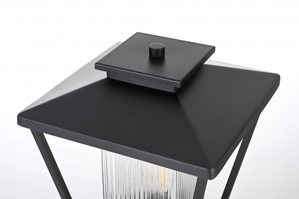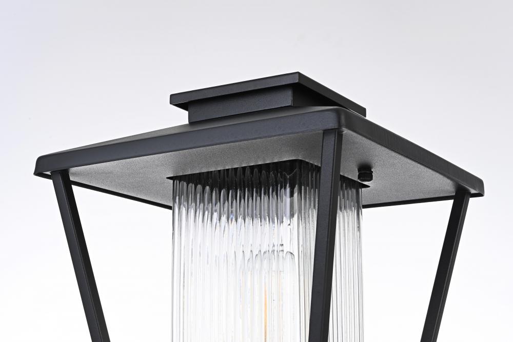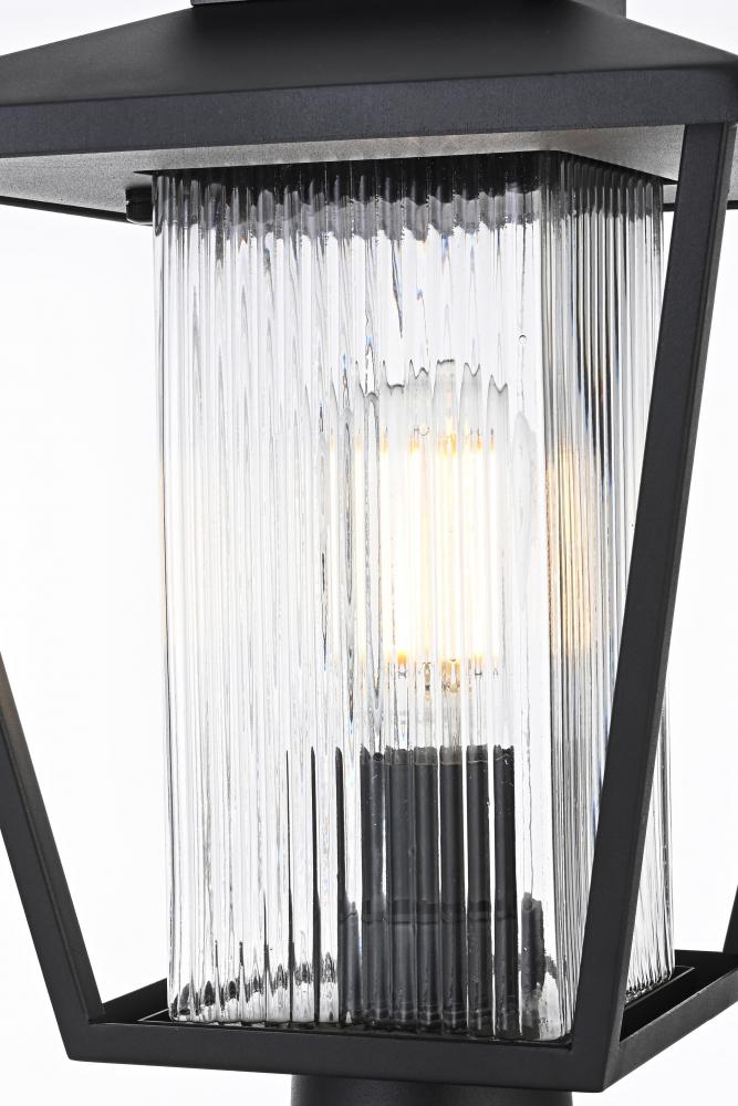 This striking outdoor post light is perfect for adding style and illumination to your home’s exterior. with its iron frame and ribbed glass shade, this fixture combines durability with a touch of sophistication. The ribbed glass beautifully diffuses the light, creating an inviting atmosphere for your porch or patio. Designed with a versatile and timeless silhouette, it will complement various architectural styles. The subtle matte black finish enhances its modern appeal while maintaining a low-key yet powerful visual presence.