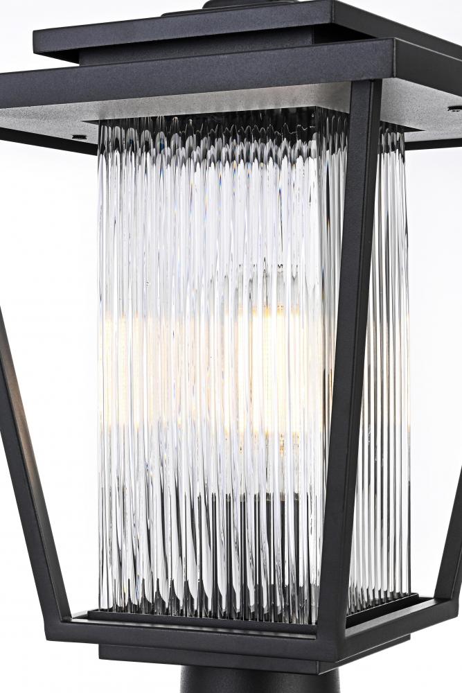 Add a touch of modern industrial flair to your home's exterior with this outdoor post light. Featuring a matte black iron frame and ribbed glass panels, this light brings a sophisticated yet understated charm to your outdoor decor. The ribbed glass diffuses light softly, providing an inviting glow that's perfect for illuminating patios, doorways, or garden paths. Built to withstand the elements, this post light is as durable as it is stylish, ensuring a reliable lighting solution for years to come. with its straightforward installation process, this light is a simple yet impactful way to upgrade your outdoor space.