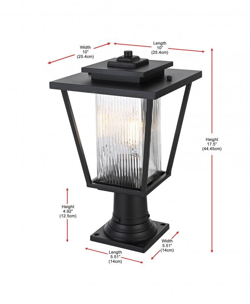 Outdoor Pole Light L10" H17.5" E10" L1 Black