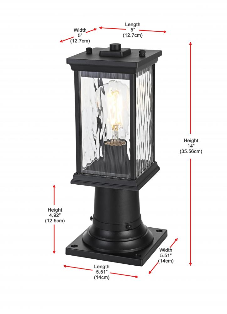 Outdoor Pole Light L5" W5" H14" L1 Black