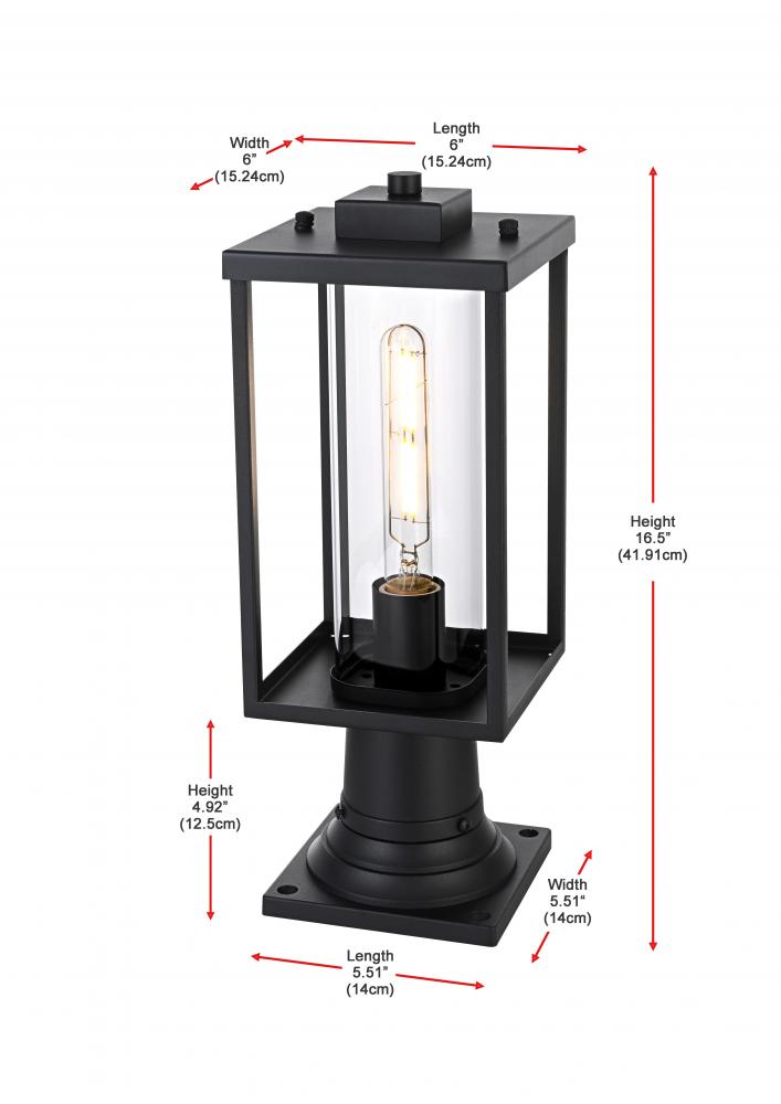 Outdoor Pole Light L6" H16.5" E6" L1 Black