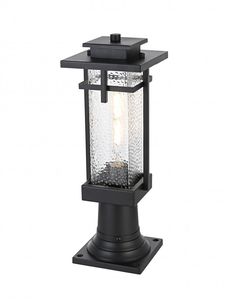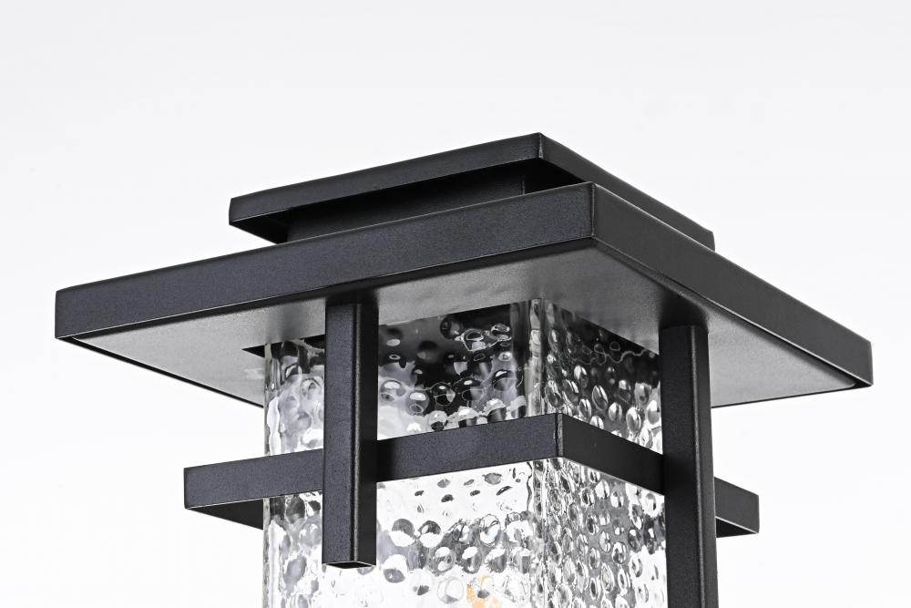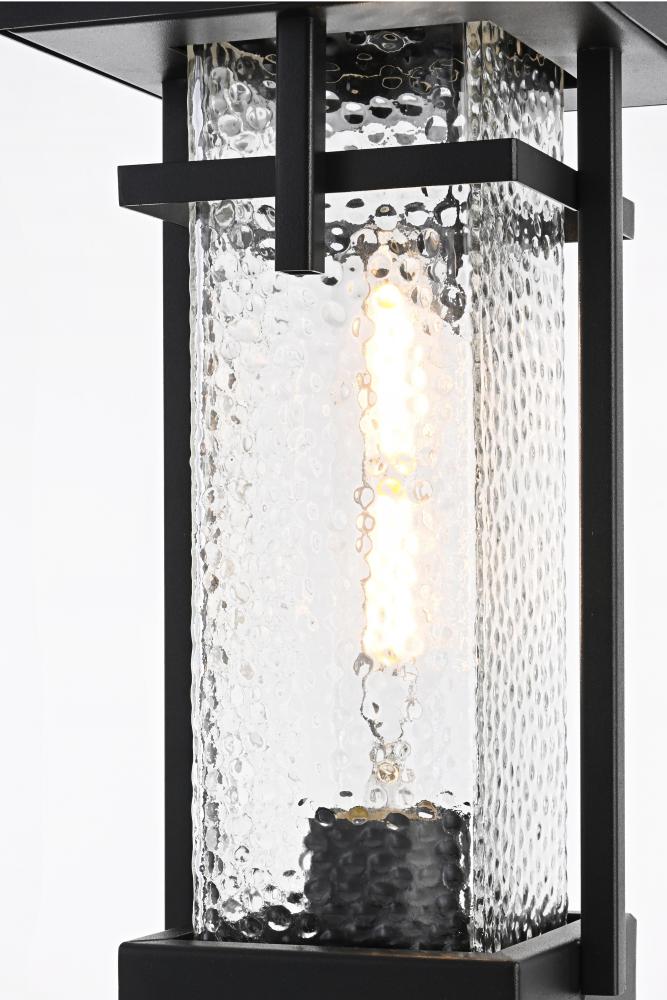 This outdoor post light embodies a timeless design that adds an upscale touch to any exterior space. Crafted from durable iron and clear hammered glass, it effortlessly merges aesthetics and practicality. The hammered glass creates a warm and inviting glow, making it perfect for lighting pathways, porches, or garden areas. The E26 socket base allows for versatility in bulb selection to create the ambiance of your choice, and the light is designed to withstand weather exposure, ensuring long-lasting performance. The top roof cap design adds a classic accent while enhancing light direction, making it both stylish and functional for any home exterior.