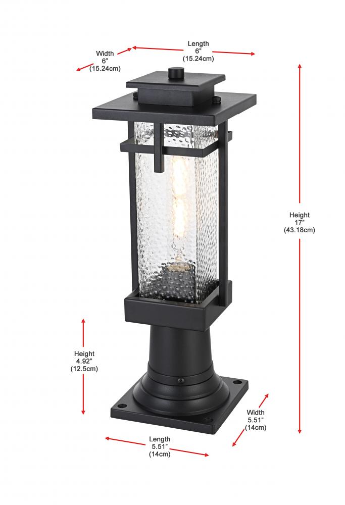 Outdoor Pole Light L6" W6" H17" L1 Black