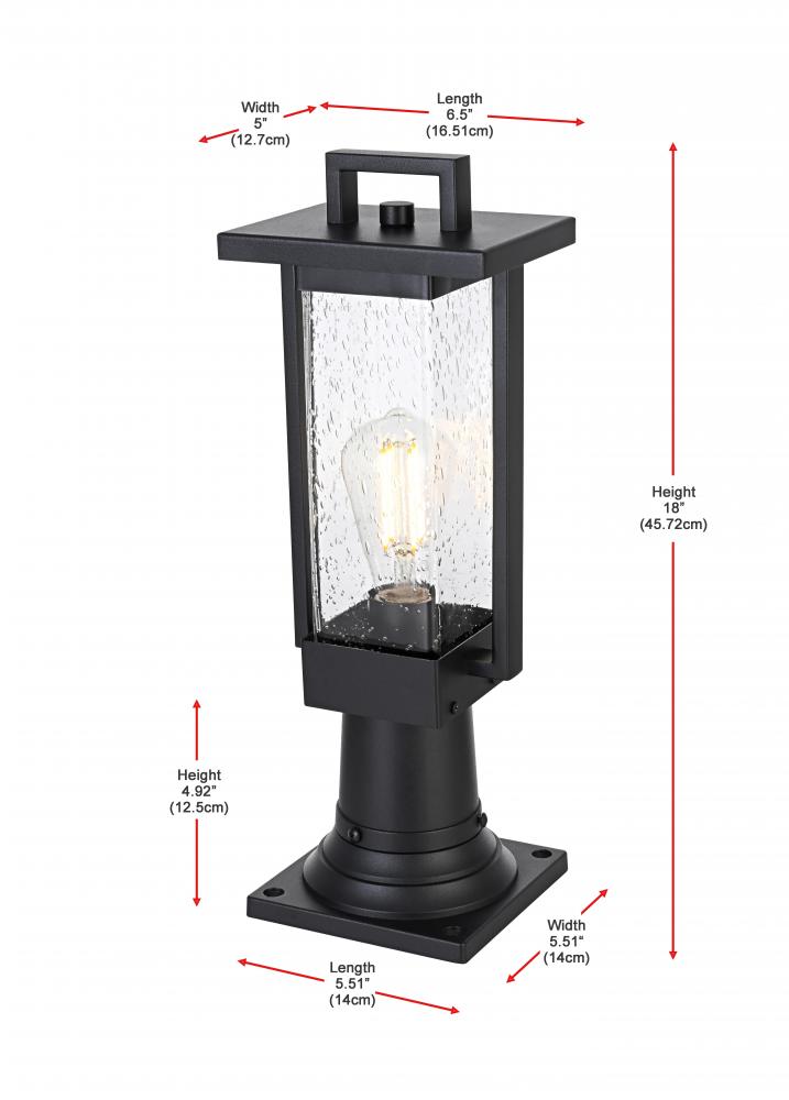 Outdoor Pole Light L6.5" H18" W5.5" L1 Black