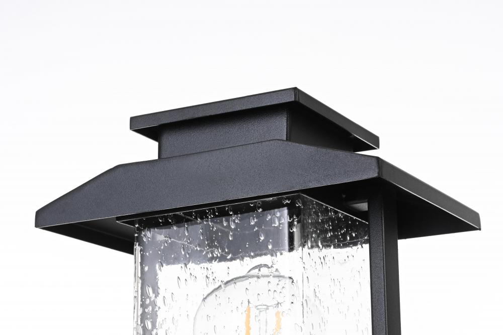 This outdoor post light is an impressive blend of modern style and functionality, ideal for enhancing the ambiance of your home's exterior. Crafted from high-quality iron and complemented by textured glass, this post light exudes a sense of timeless beauty that feels both sturdy and refined. Its crisp geometric lines and clean black finish give it a contemporary touch, while the seeded glass panel subtly diffuses the light, adding a charming glow that instantly elevates the atmosphere. Perfect for porches, patios, or garden paths, this post light is designed to create a welcoming, radiant entrance for guests. with its straightforward design, it offers an effortlessly stylish way to brighten your outdoor space without overwhelming your existing decor.