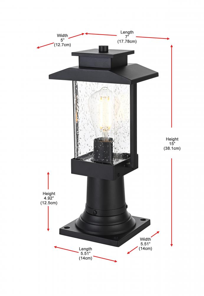 Outdoor Pole Light L7" H15" E5" L1 Black