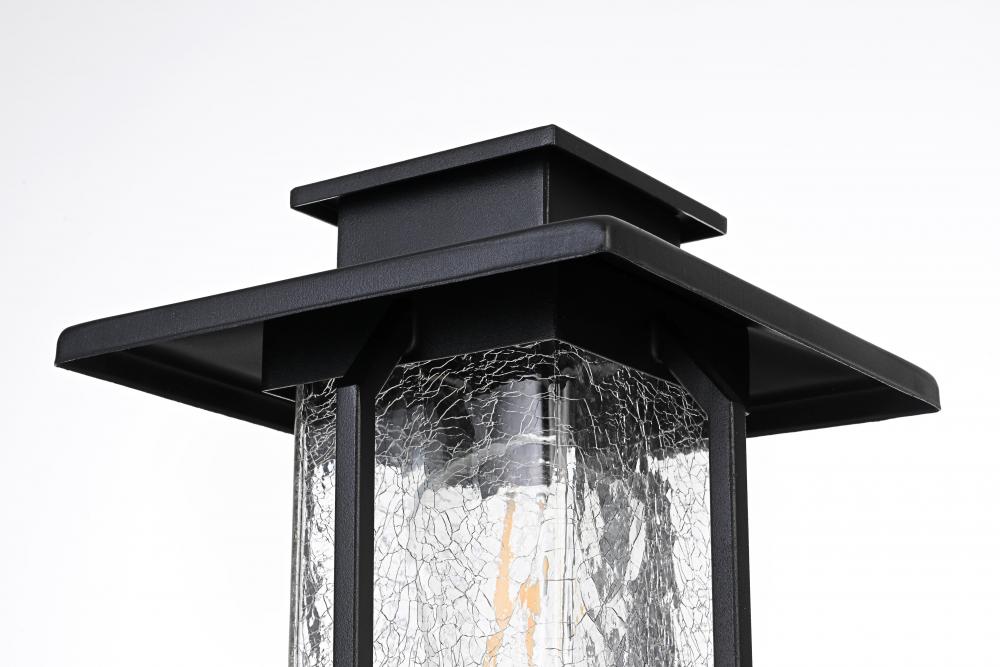 Transform your home's exterior with this charming craftsman-style wall post light. Built with a durable iron frame and finished in a sleek matte black, this light adds character to your entryways, patios, or porches. The crackle glass panels create a unique, diffused lighting effect, giving your home a warm and welcoming glow. Designed to endure outdoor conditions, this post light is both a stylish and practical addition to your outdoor space, ensuring a well-lit, safe, and attractive home environment.