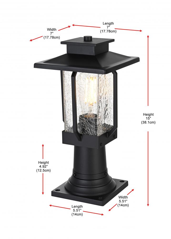 Outdoor Pole Light L7" W7" H15" L1Black