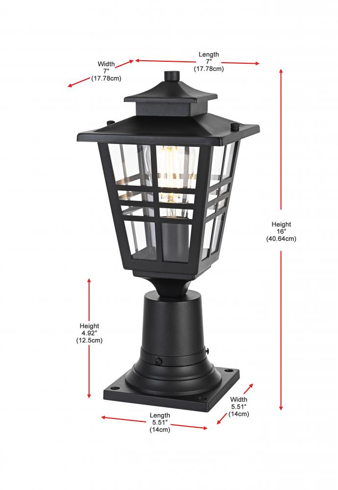 Outdoor Pole Light L7" W7" H15.5" L1 Black