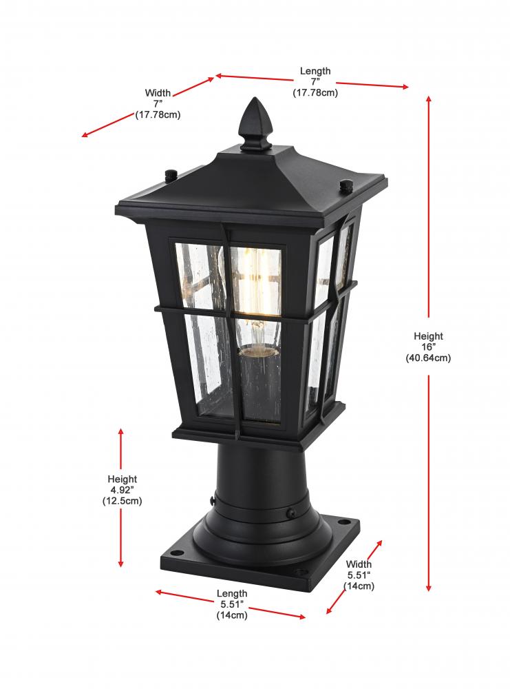 Outdoor Pole Light L7" W7" H16" L1 Black