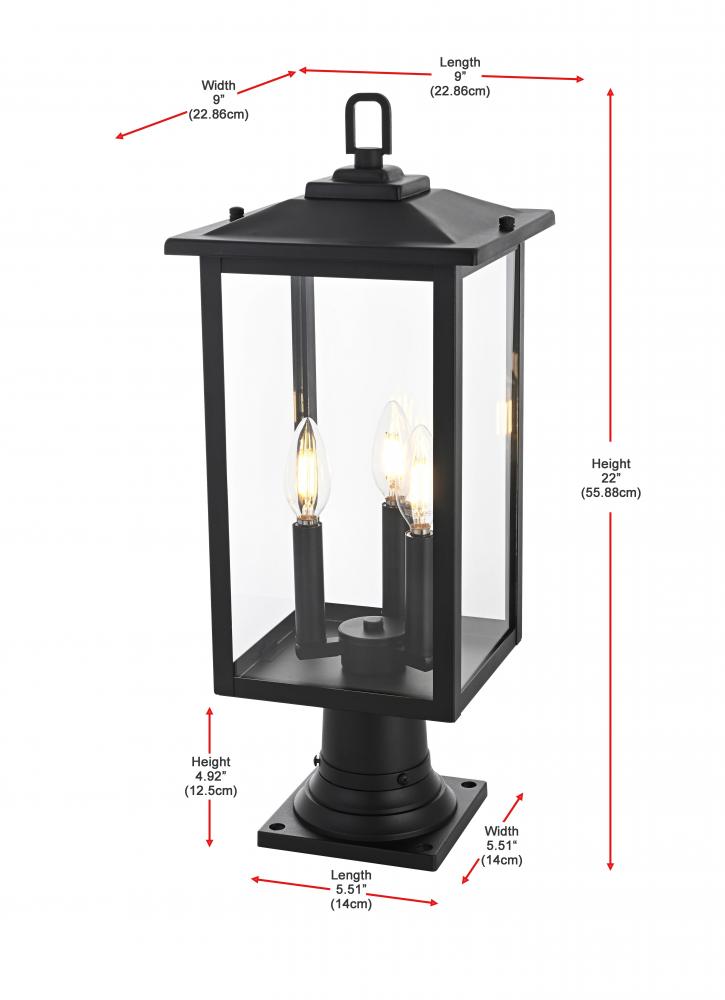 Outdoor Pole Light L9" W9" H22" L3 Black