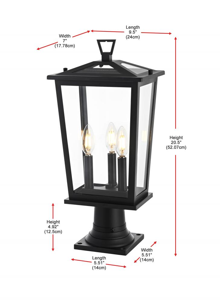 Outdoor Pole Light L9.5" W7" H20.5" L3 Black