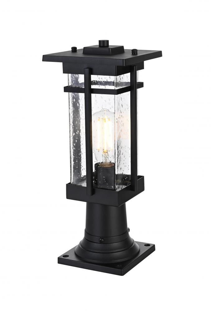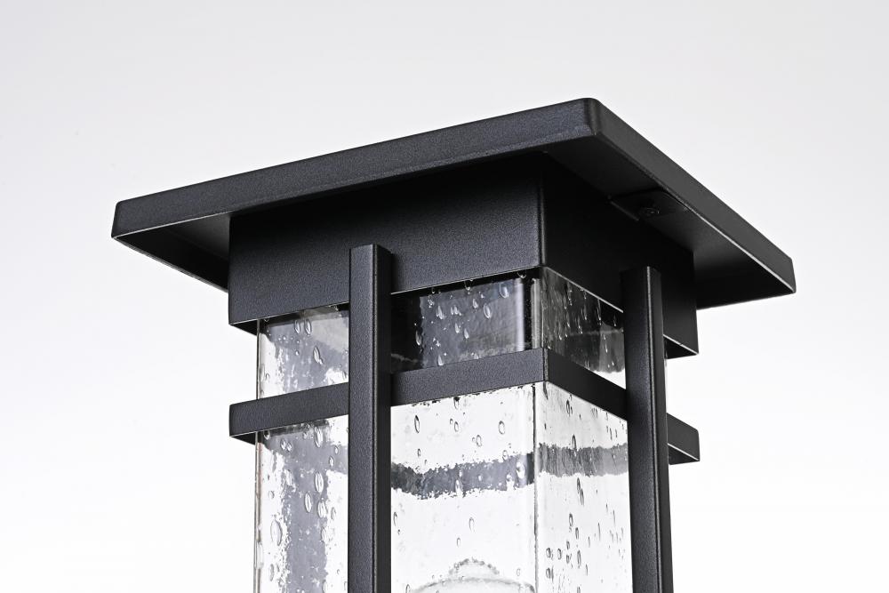 This outdoor post light is a perfect blend of durability and style, making it a standout piece for any exterior wall. Crafted from high-quality iron and clear seeded glass, the light exhibits a timeless lantern silhouette with crisp lines and an attention to detail that provides a fresh twist on classic outdoor lighting. The iron frame with a sleek black finish adds a robust and contemporary touch, while the clear seeded glass creates a warm and inviting glow, enhancing the overall ambiance of any outdoor space. Featuring an E26 base for versatile bulb options, this light is as functional as it is beautiful.