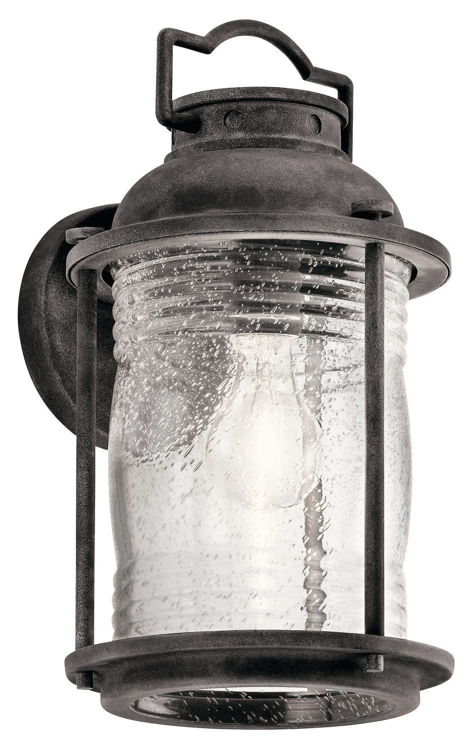 Add a little bit of colonial Charm to your outdoor lighting with this 1 light medium outdoor lantern from the Ashland Bay Collection. The traditional design is enhanced by a weathered zinc finish and clear glass. Use with old-fashioned Edison-styled bulbs for time-honored appeal.