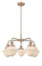 Oxford - 5 Light - 26 inch - Antique Brass - Matte White Shade - Chandelier