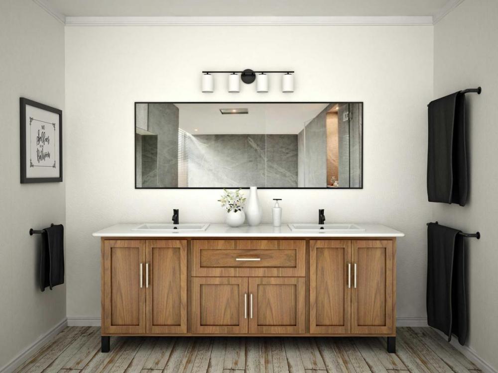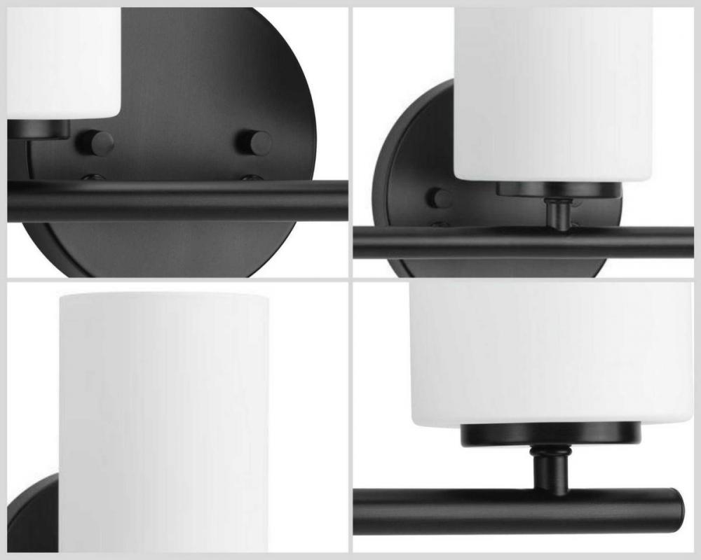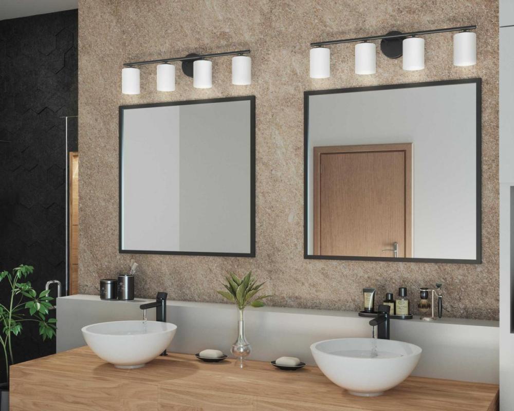 Ideal for a bathroom;Perfect for modern and transitional style settings;Classic textured black finish;Elegant etched glass shades;Mount the light fixture facing up or down;Use 4 medium base bulbs that are sold separately (100 W max - LED/CFL/incandescent);