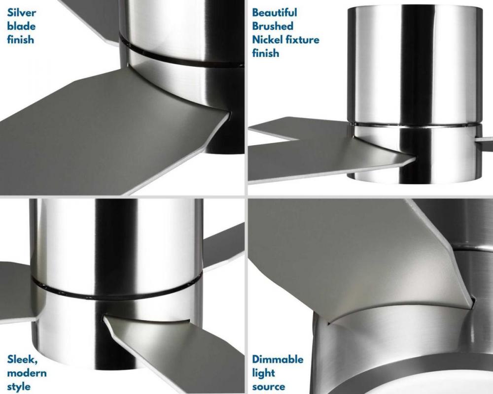 Experience an ideal blend of style and function with the Braden Collection 44-Inch 3-Blade Brushed Nickel LED Mid-Century Modern Indoor Hugger Ceiling Fan. Three reversible plywood blades are coated in American walnut and silver finishes for extra design versatility. The fan's center is coated in a beautiful brushed nickel finish to accentuate its modern character. A remote control with batteries is included so you can adjust full-range dimming and fan speed without breaking a sweat.