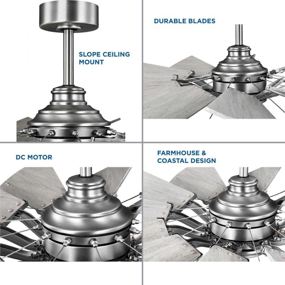 Relax under the refreshing breeze of the Springer Collection 52-Inch 12-Blade White Barnwood DC Motor Farmhouse Windmill Ceiling Fan ideal for any great room, bedroom, living room, or bonus room. Perfect for farmhouse, rustic, and coastal style settings. Ideal for boosting airflow in smaller spaces. 12 sweeping blades are coated in a white barnwood finish for rustic flair.