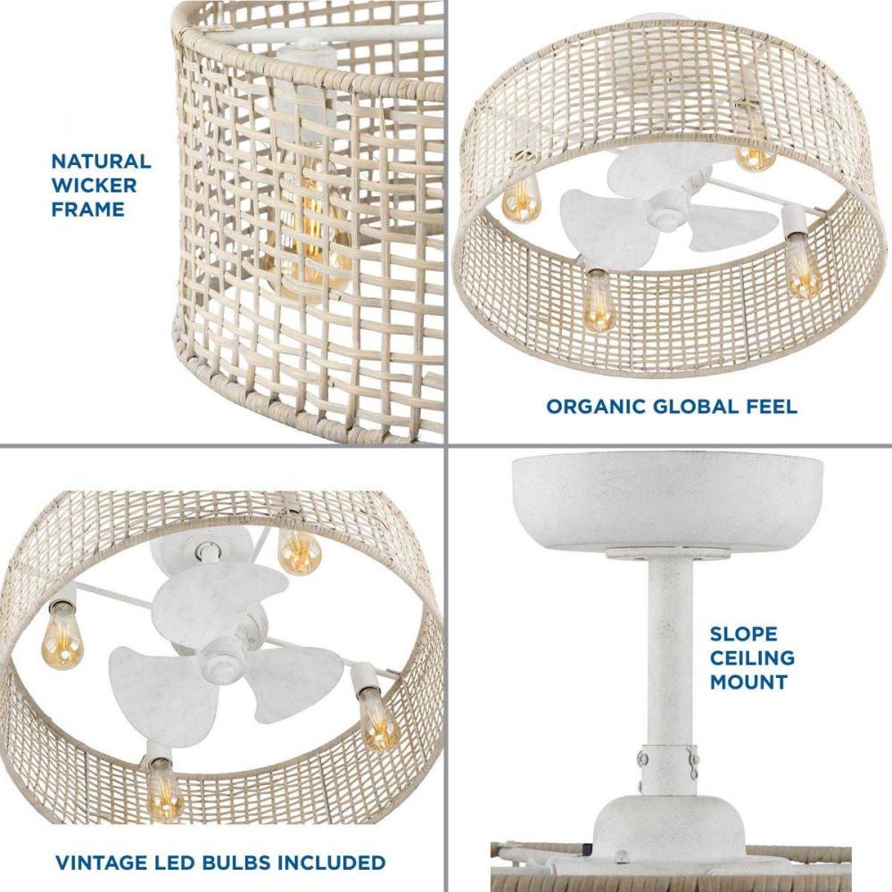 APPLICATION: Ideal for any great room, bedroom, living room, or bonus room.;STYLES: Perfect for farmhouse, rustic, and coastal style settings.;BLADES: 3 cottage white blades rotate within the natural wicker frame with a charming lattice-like design.;DIMENS