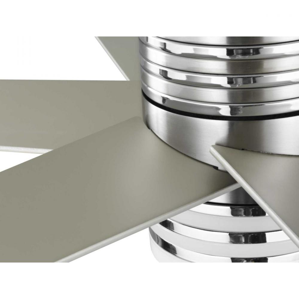 Ideal for a bedroom, living room, or great room;Perfect for contemporary style settings;6 reversible plywood blades with dual American walnut and silver finishes;Integrated LED module (18w), 1400 lumens, 90 CRI, 3000K, dimmable;6-speed handheld remote with
