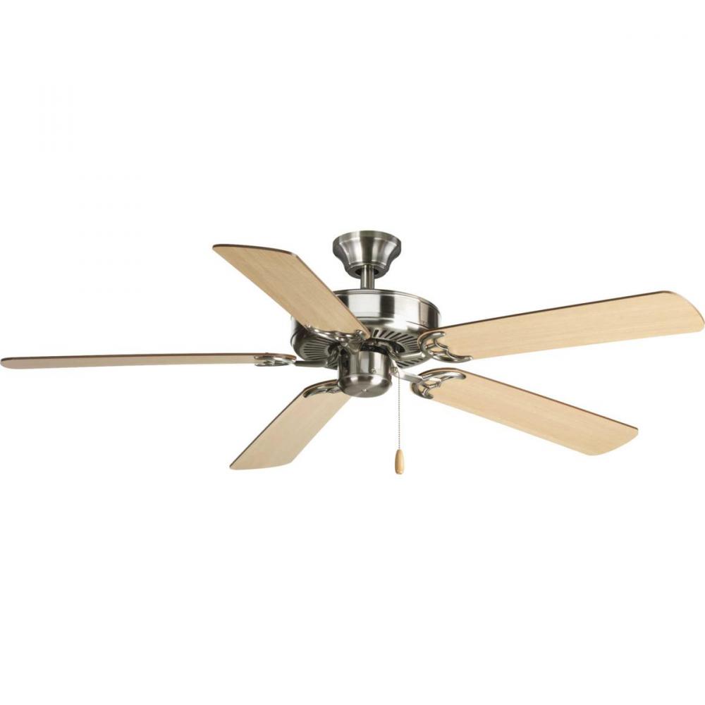52" AirPro ceiling fan features five reversible blades;Reversible Cherry/Natural Cherry blades;AirPro ceiling fan with Brushed Nickel finish;Pull chain on Brushed Nickel is chrome with a maple fob;Indoor ceiling fan ideal for use in great rooms, living