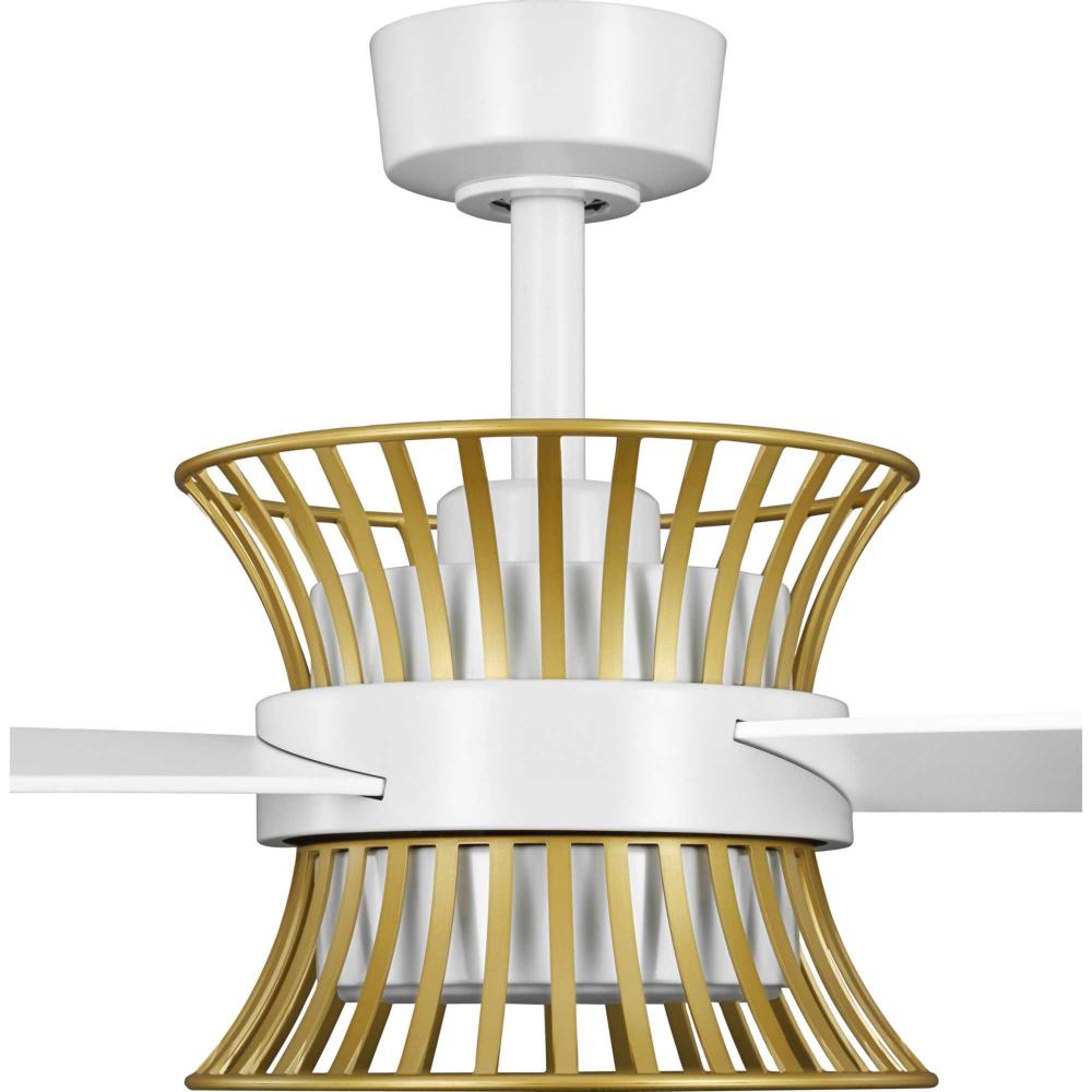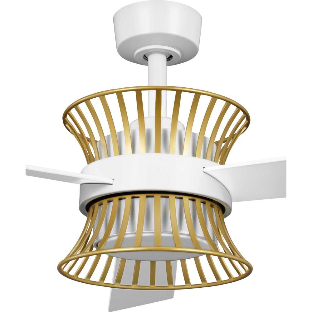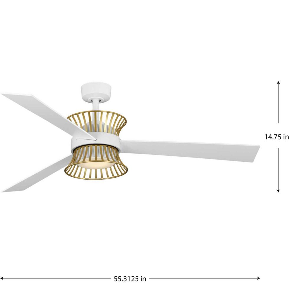 Three blade 55-in Matte white ceiling fan with woven cage accent