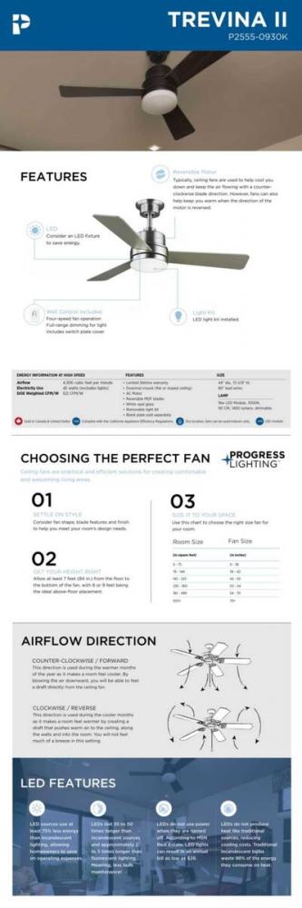 Progress P2553-152WB - Trevina II Collection 52" Three-Blade Nickel Ceiling Fan