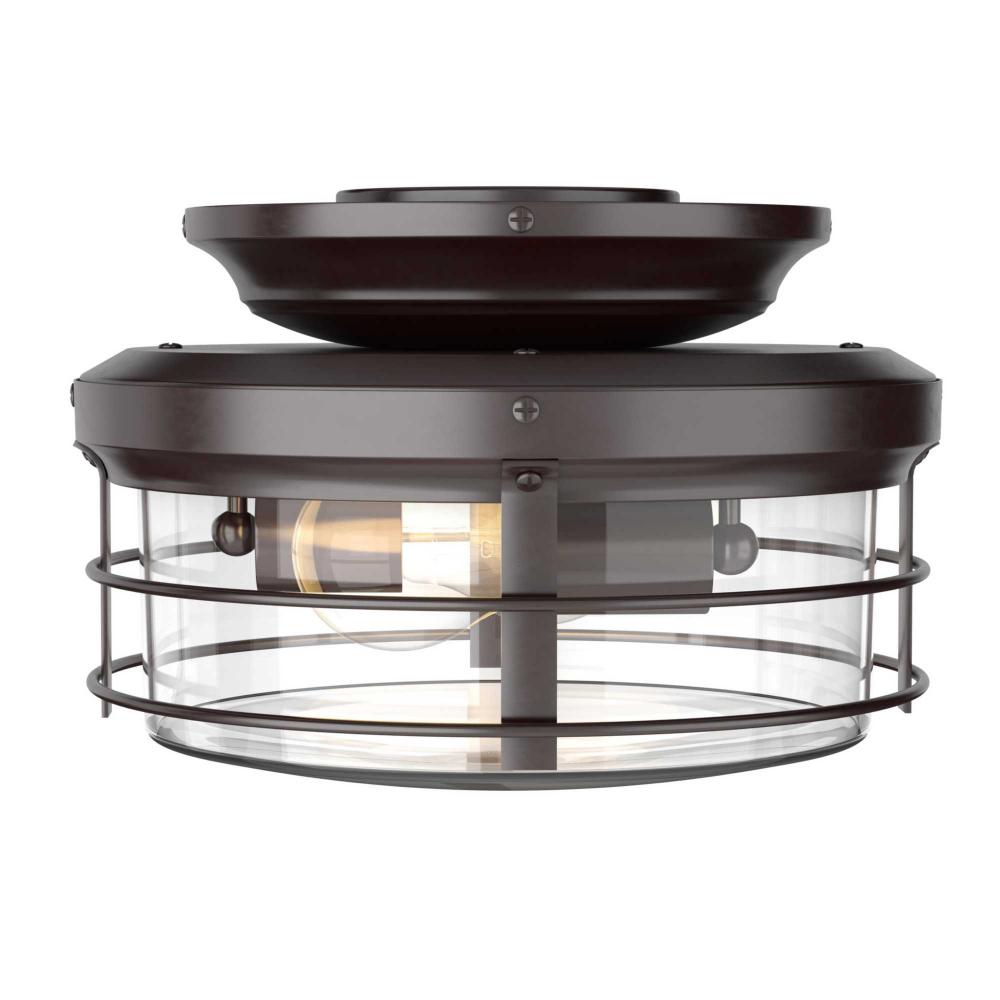 An open cage frame surrounds two ST19 bulbs in the rustic design of the Springer II Light Kit. As the sun goes down, this piece is ideal for entertaining under the circulating air of your Springer II ceiling fan. Damp listed for use inside or in covered outdoor areas, this light kit provides beautiful ambient illumination to bedrooms, living rooms, porches and patios infarmhouse, rustic, and coastal style settings. Its vintage style light base is coated in a soft Architectural Bronze finish.