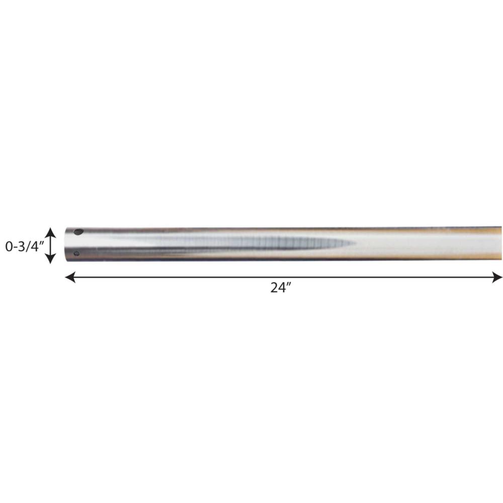 3/4 In. x 24 In. downrod for use with any Progress Lighting ceiling fan. Use of a fan downrod positions your ceiling fan at the optimal height for air circulation and provides the perfect solution for installation on high cathedral ceilings or in great rooms. Refer to the selection guide for recommended downrod lengths based upon your ceiling height. Brushed Nickel finish.