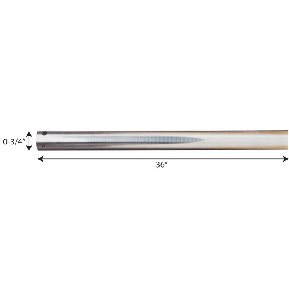 3/4 In. x 36 In. downrod for use with any Progress Lighting ceiling fan. Use of a fan downrod positions your ceiling fan at the optimal height for air circulation and provides the perfect solution for installation on high cathedral ceilings or in great rooms. Refer to the selection guide for recommended downrod lengths based upon your ceiling height. Brushed Nickel finish.