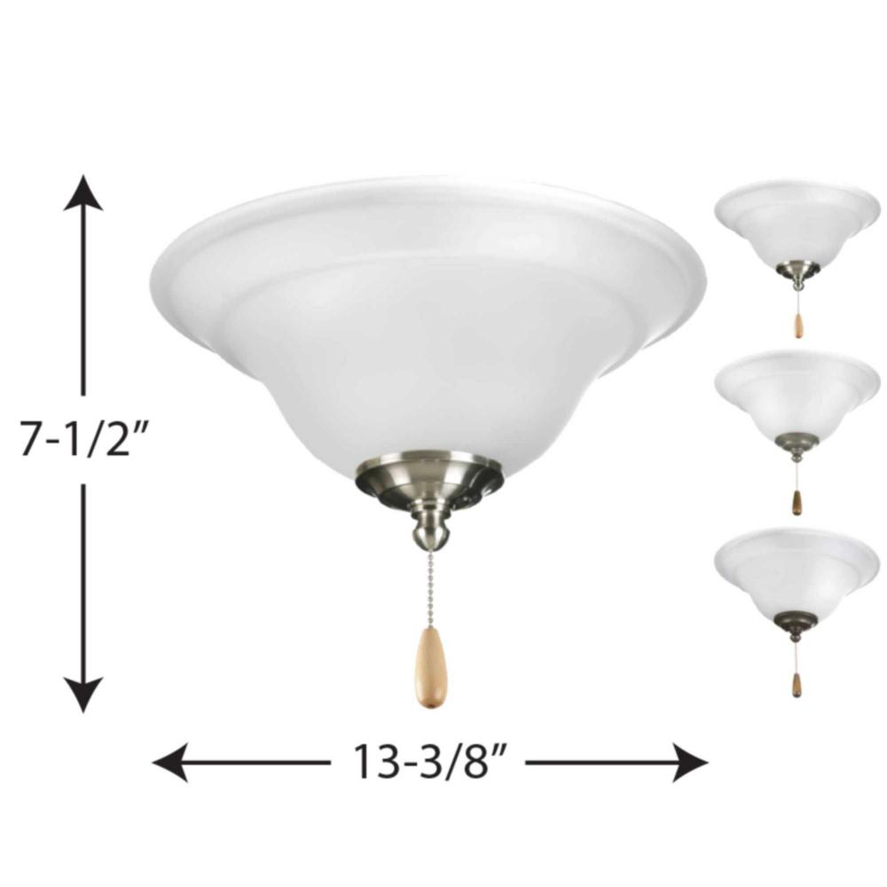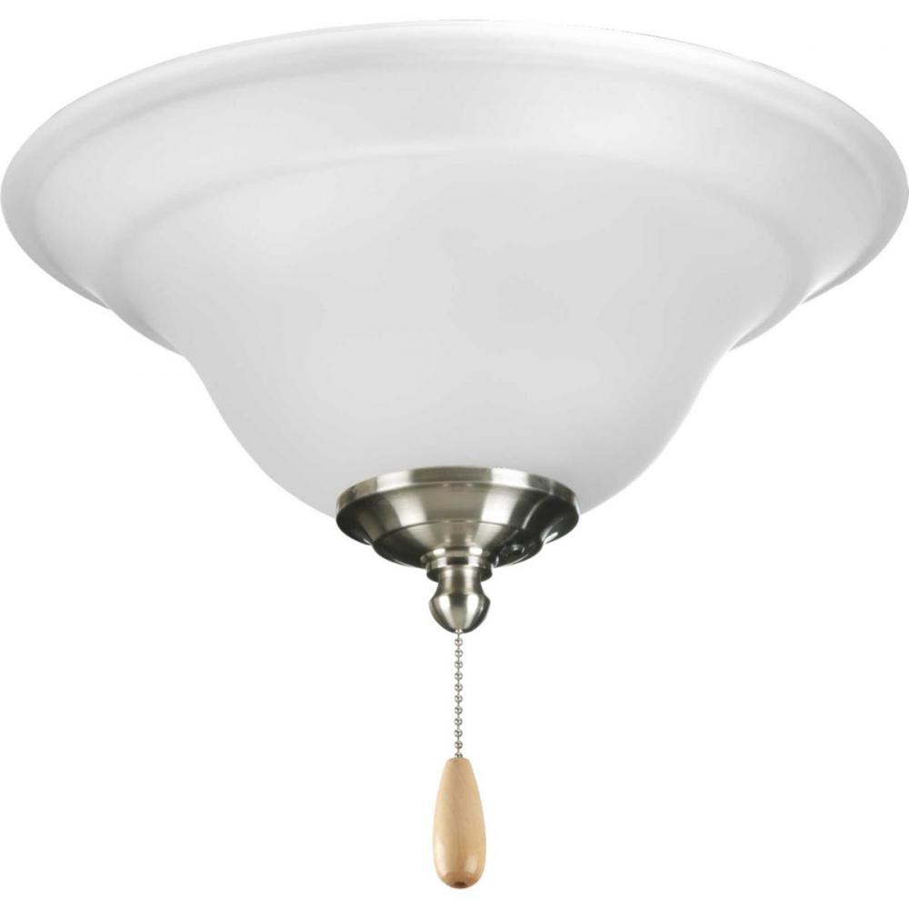 Add style and light to your ceiling fan with this universal fan light kit.;Etched glass bowl.;Finials included are -09 Brushed Nickel, -20 Antique Bronze, -30 White and -77 Forged Bronze.;Quick-connect wiring to any progress fan that accept an accessory li