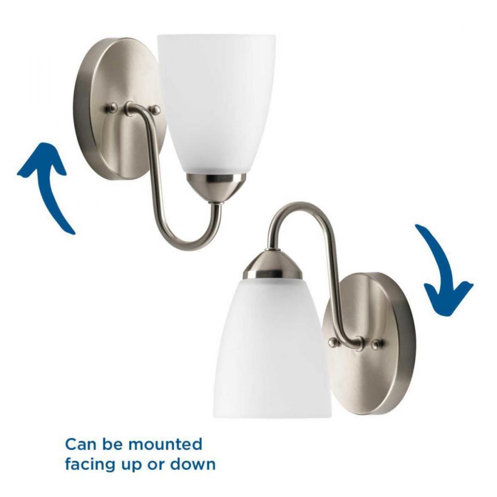 Ideal for a bathroom, hall, or foyer;Perfect for traditional and transitional style settings;Beautiful brushed nickel finish;Elegant etched glass shade;Mount the light fixture facing up or down;Use 1 medium base bulb that is sold separately (100 W max - LE