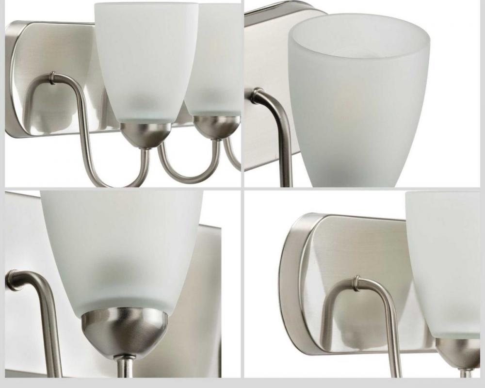 Ideal for a bathroom or great room;Perfect for traditional and transitional style settings;Beautiful brushed nickel finish;Elegant etched glass shades;Mount the light fixture facing up or down;Use 3 medium base bulbs that are sold separately (100 W max - L