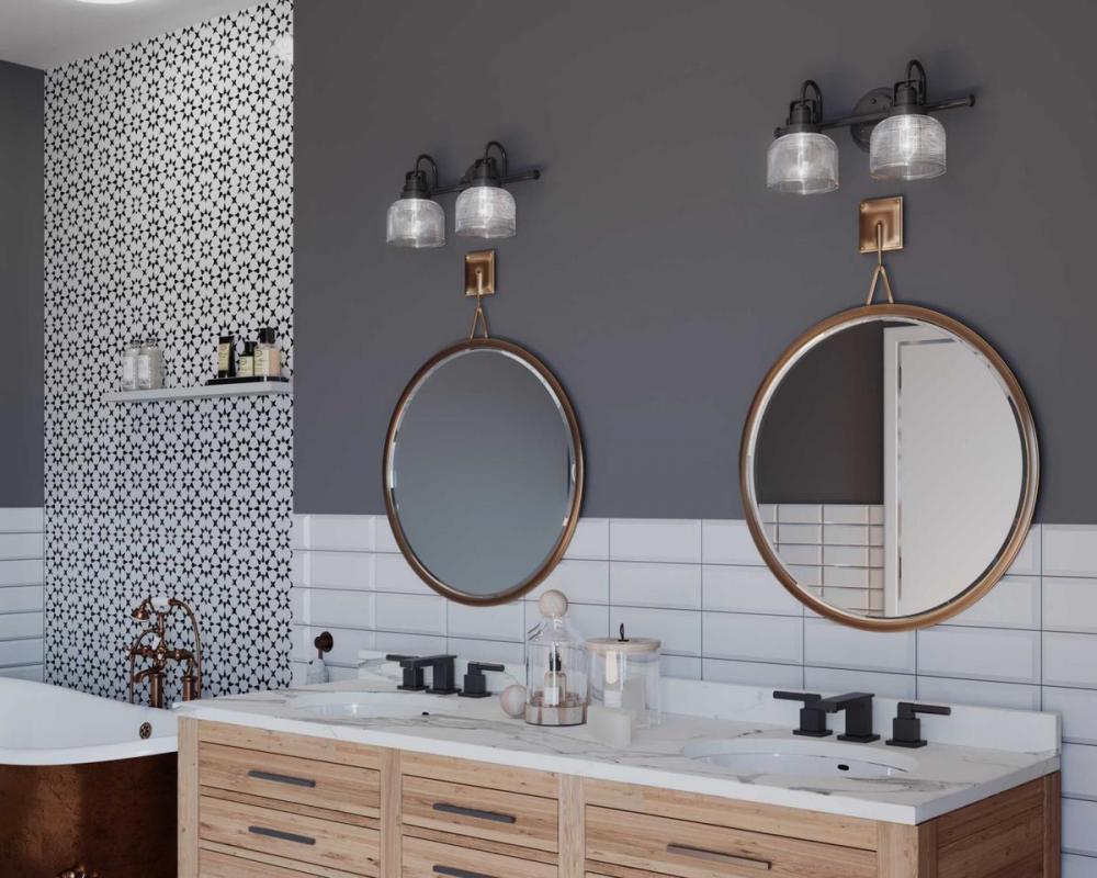 Ideal for a bathroom and powder room.;Perfect for coastal, farmhouse, transitional, and vintage electric style settings;Handsome venetian bronze finish;Stunning clear double prismatic glass shades;Mount the light fixture facing up or down;Use 2 medium base