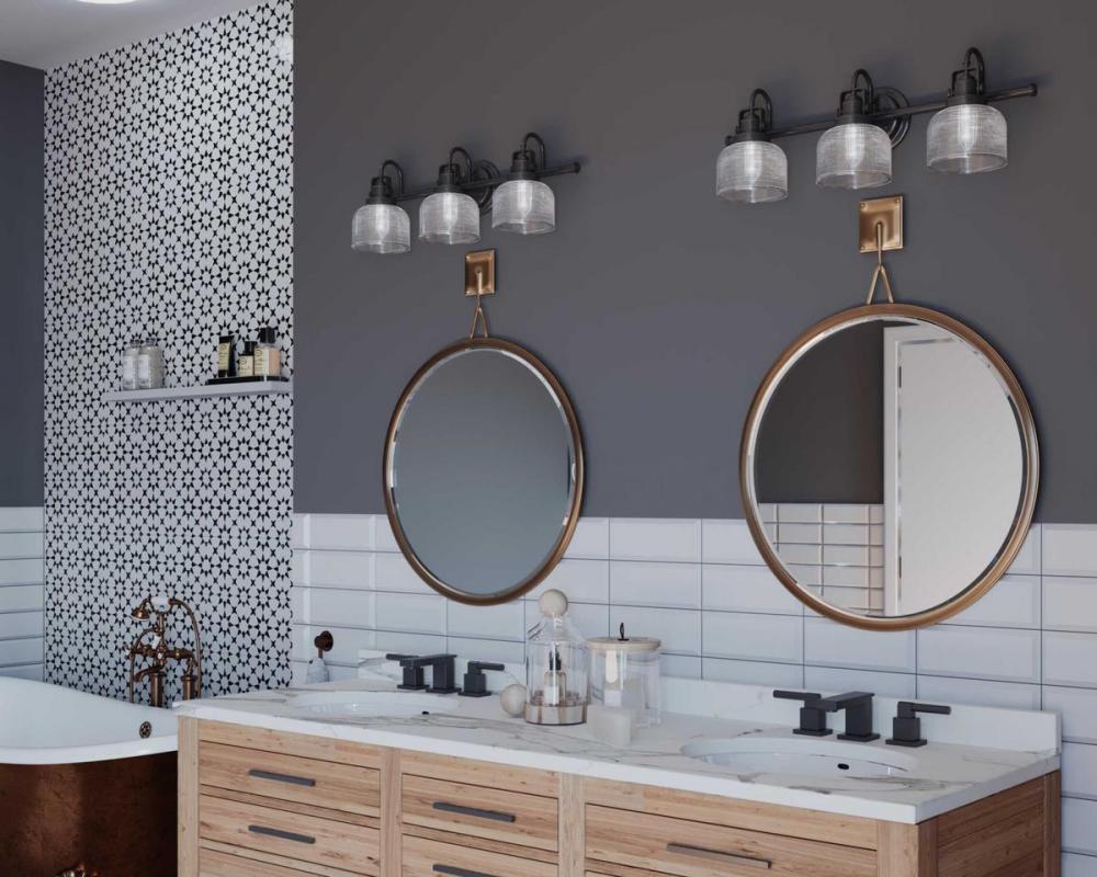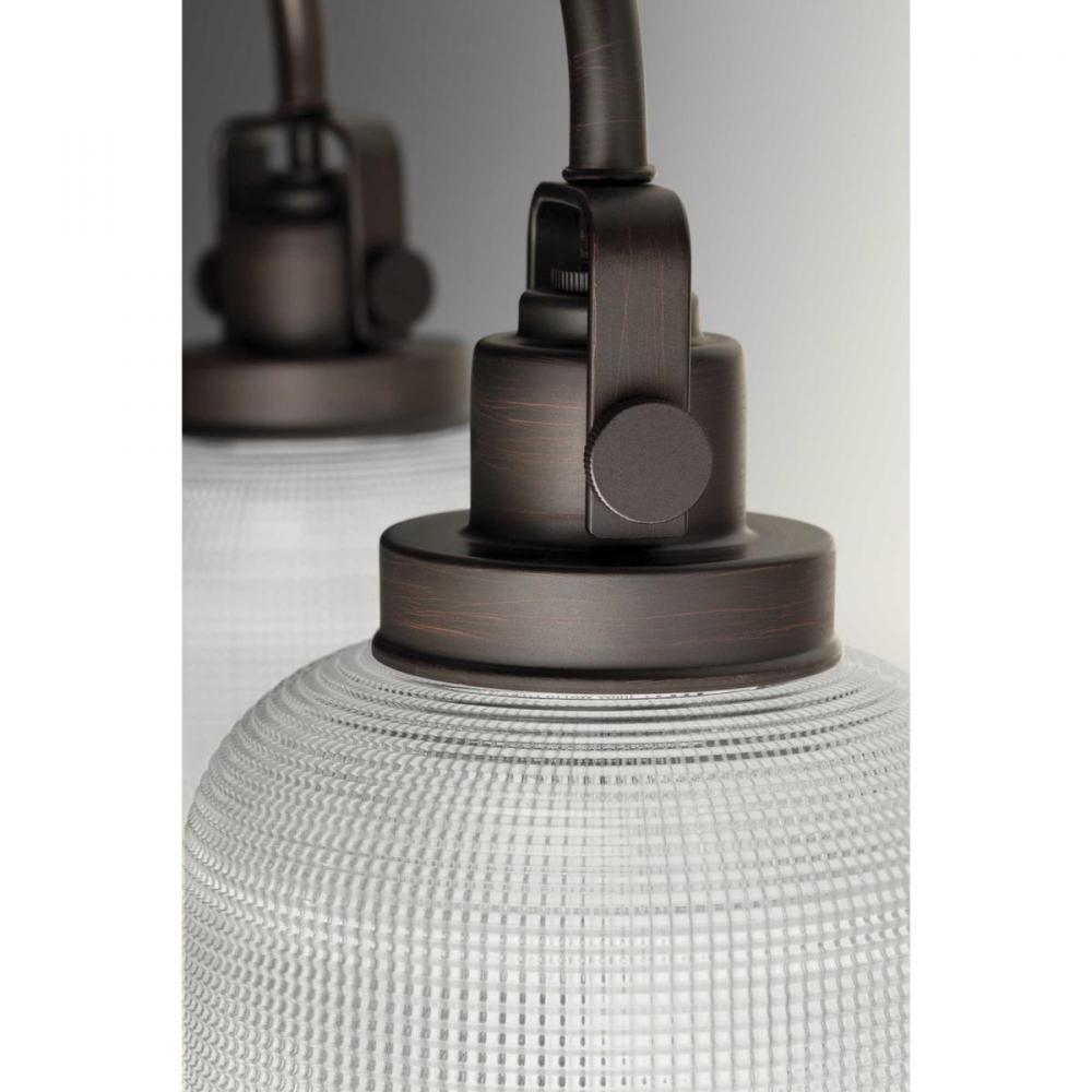 Ideal for a bathroom;Perfect for coastal, farmhouse, transitional, and vintage electric style settings;Handsome venetian bronze finish;Stunning clear double prismatic glass shades;Mount the light fixture facing up or down;Use 3 medium base bulbs that are s
