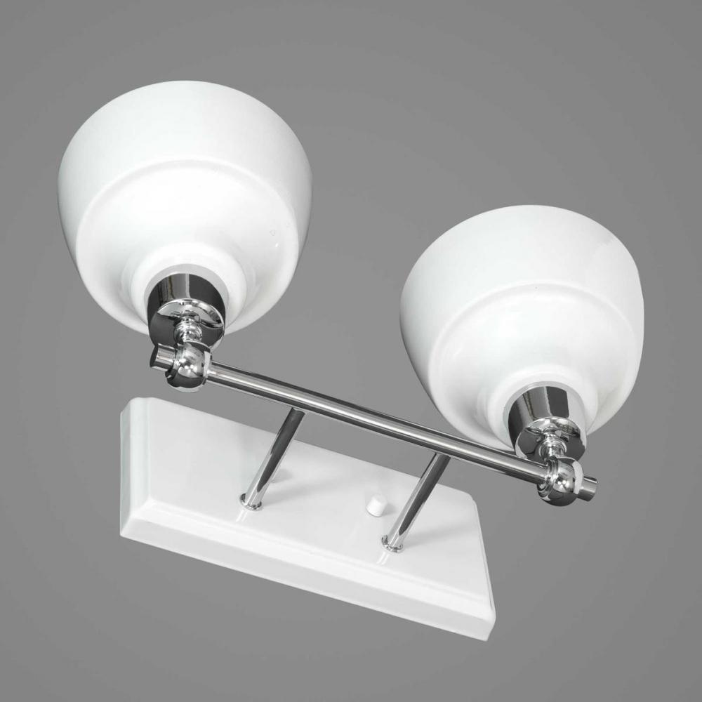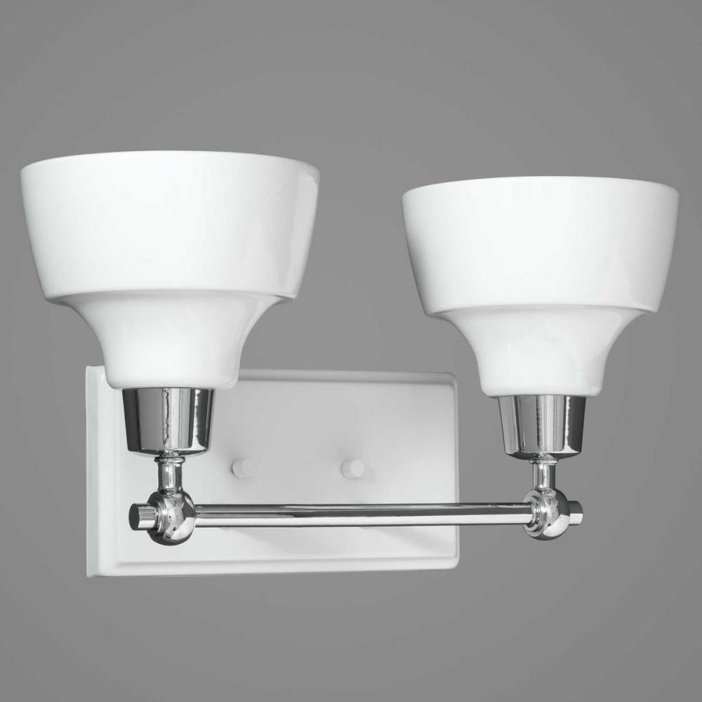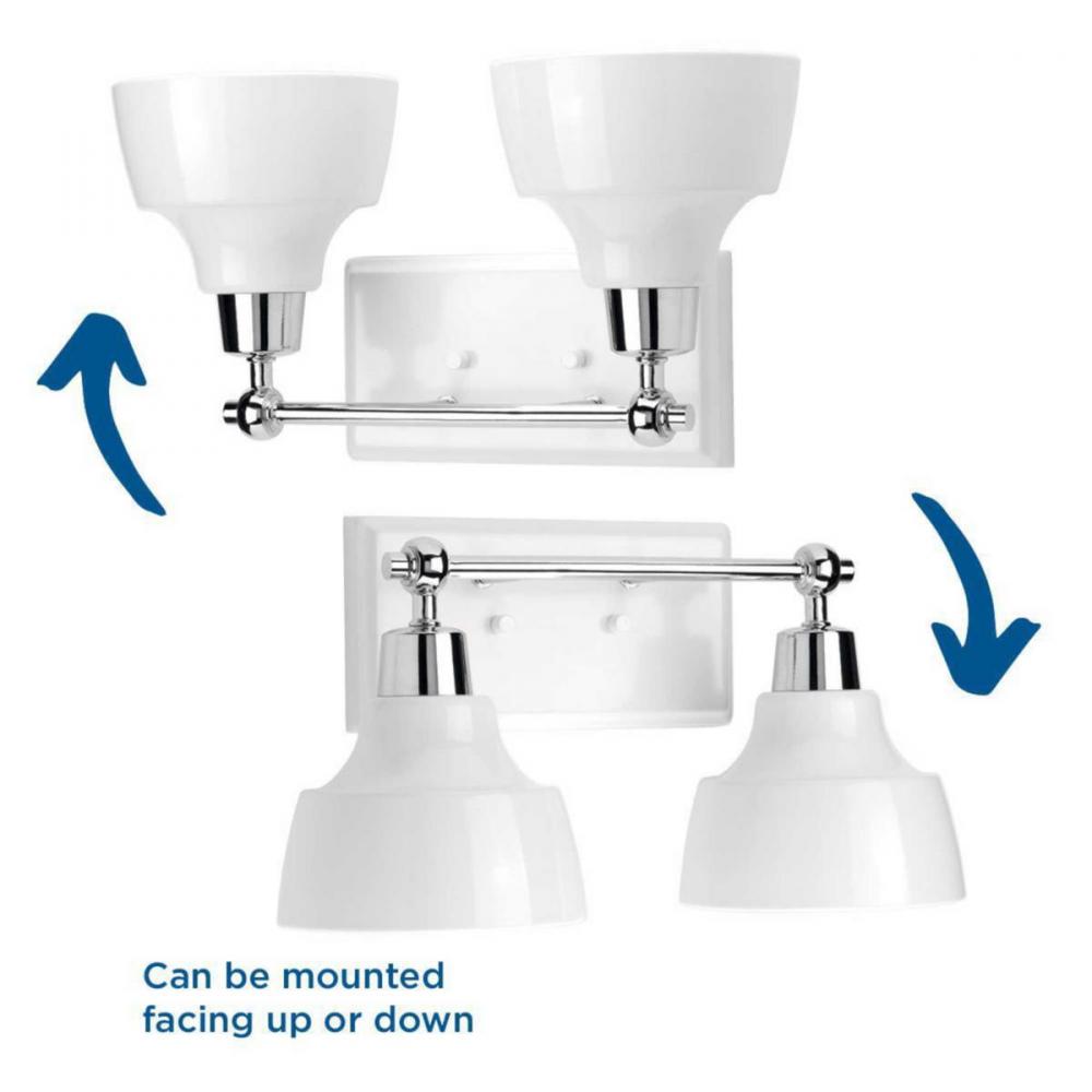 Ideal for a bathroom and powder room.;Perfect for coastal, farmhouse, and urban industrial style settings;Gloss white with crisp polished chrome accents;Crisp white metal shades;Mount the light fixture facing up or down;Use 2 medium base bulbs that are sol