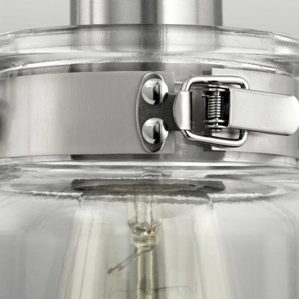 Ideal for a bathroom and powder room.;Perfect for farmhouse and urban industrial style settings;Beautiful brushed nickel finish;Crisp clear glass shades;Mount the light fixture facing up or down;Use 2 medium base bulbs that are sold separately (100 W max -