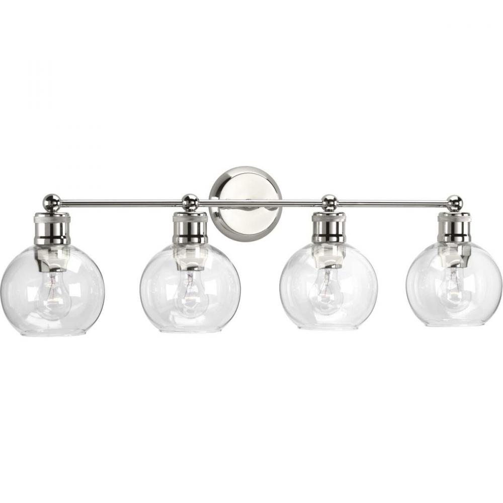 polished nickel;fourlight bath;grey;incandescent;bath vanity;traditional;casual;urban industrial;bath light;bath vanity light;bathroom light;bathroom wall light;bath wall light;bath bracket;bath wall bracket
