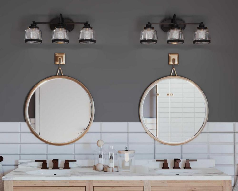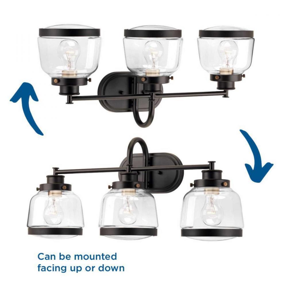 Ideal for a bathroom;Perfect for farmhouse and vintage electric style settings;Handsome antique bronze finish;Crisp clear glass shades;Mount the light fixture facing up or down;Use 3 medium base bulbs that are sold separately (75 W max - LED/CFL/incandesce