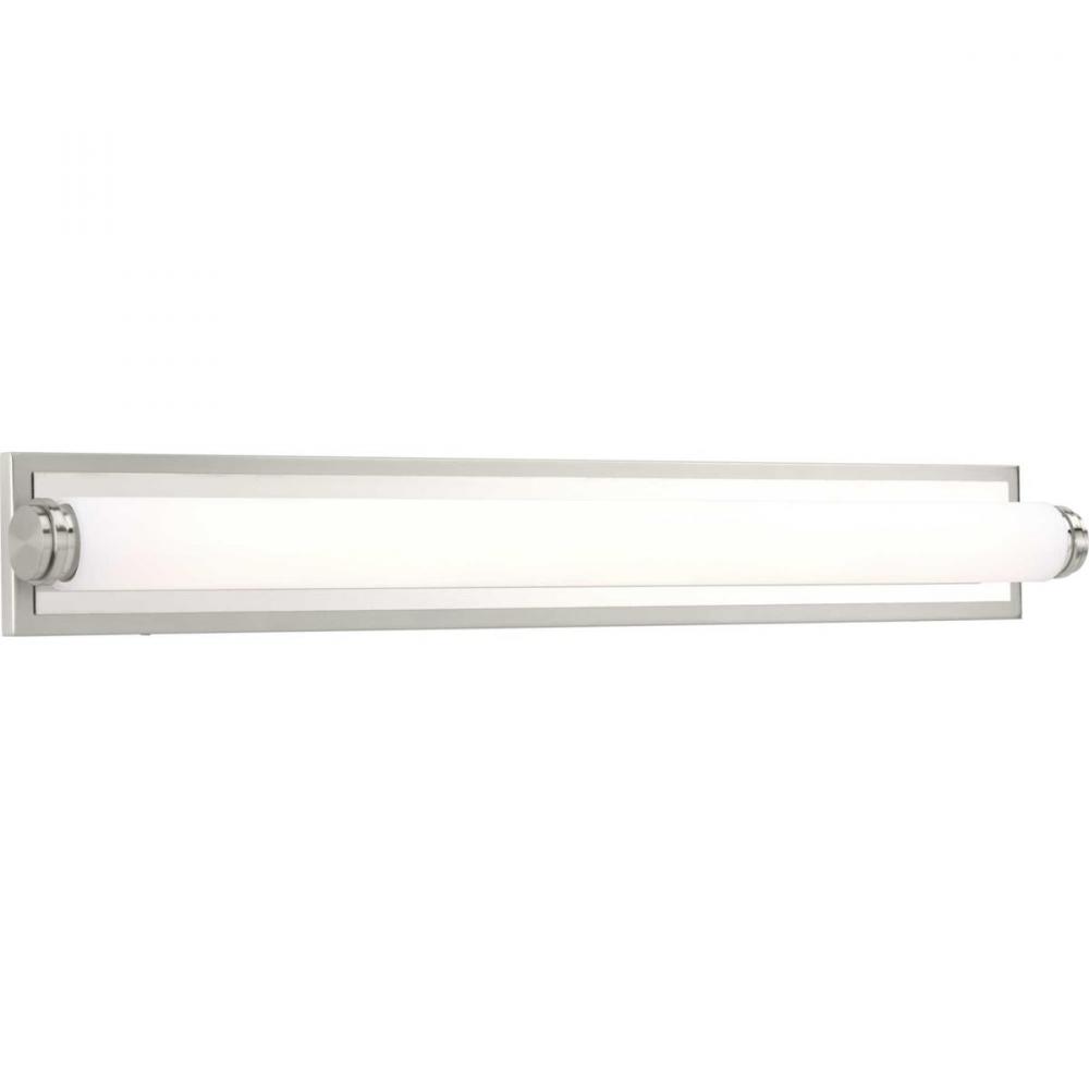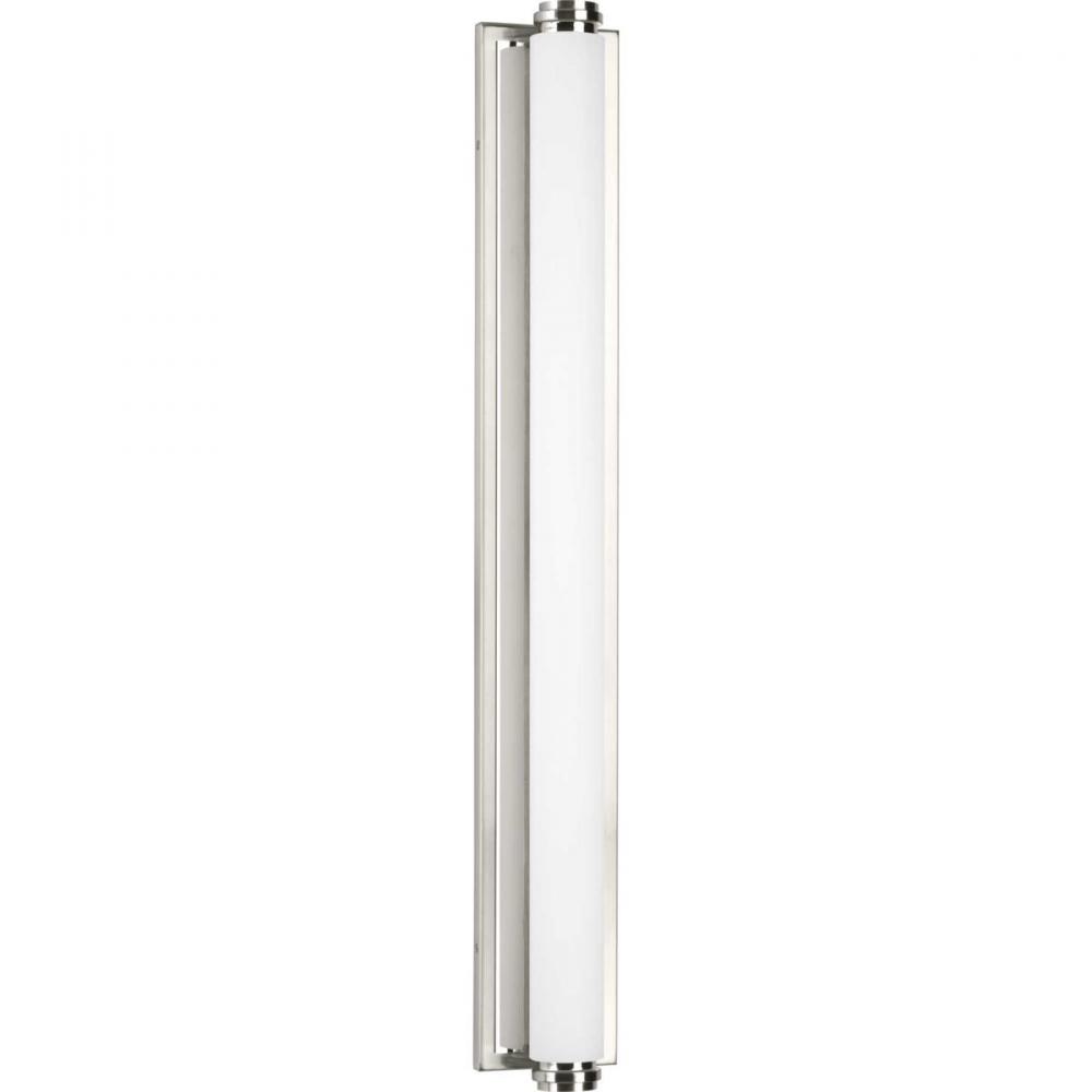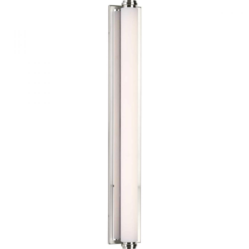 Ideal for a bathroom;Perfect for modern style settings;Beautiful brushed nickel finish;Elegant etched white glass shade;Fixture can mount horizontal and vertical;Includes 1 LED (53 W), 2969 lumens, 3000 K, 90 CRI, dimmable;Measures 36-inch width by 4.75-i