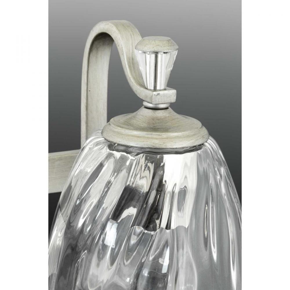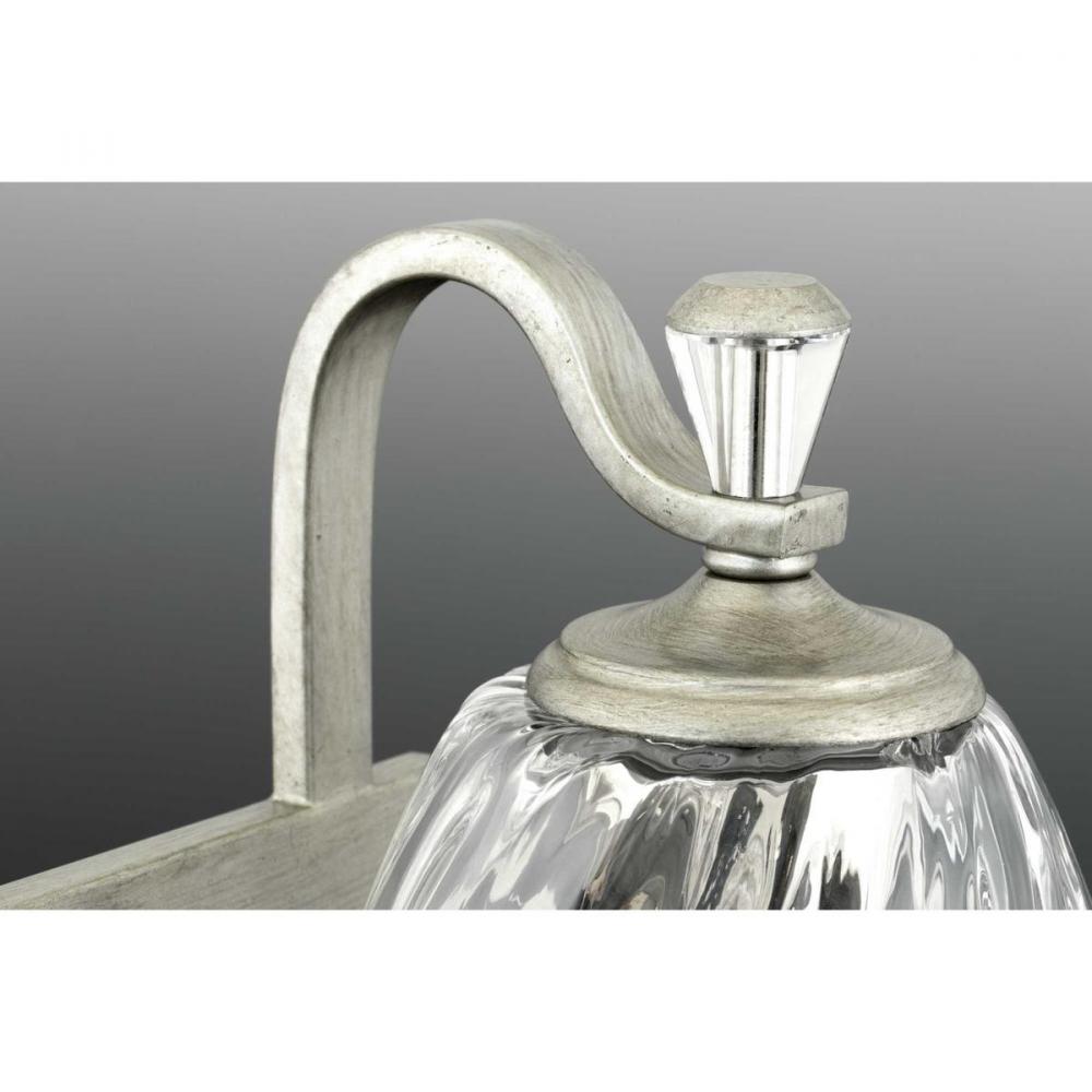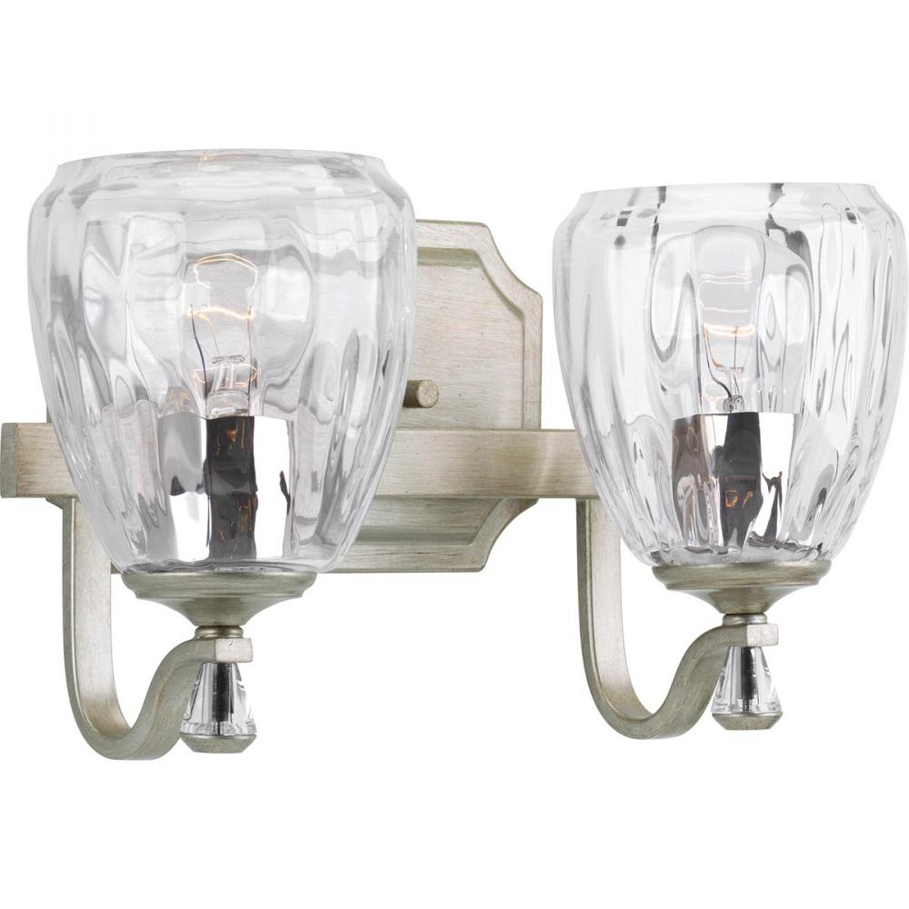Ideal for a bathroom and powder room.;Perfect for luxe, new traditional, traditional, and transitional style settings;Sleek silver ridge finish with polished nickel accents;Elegant clear water glass shades;Mount the light fixture facing up or down;Use 2 me