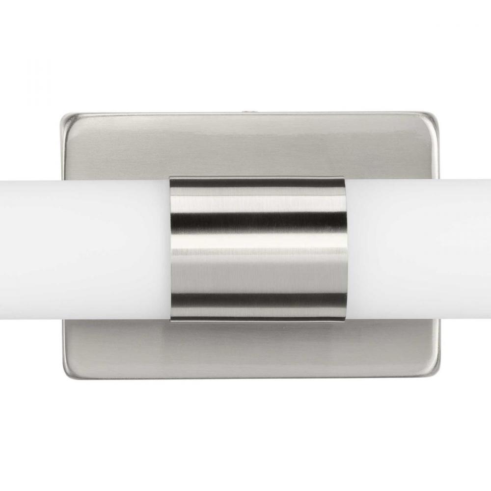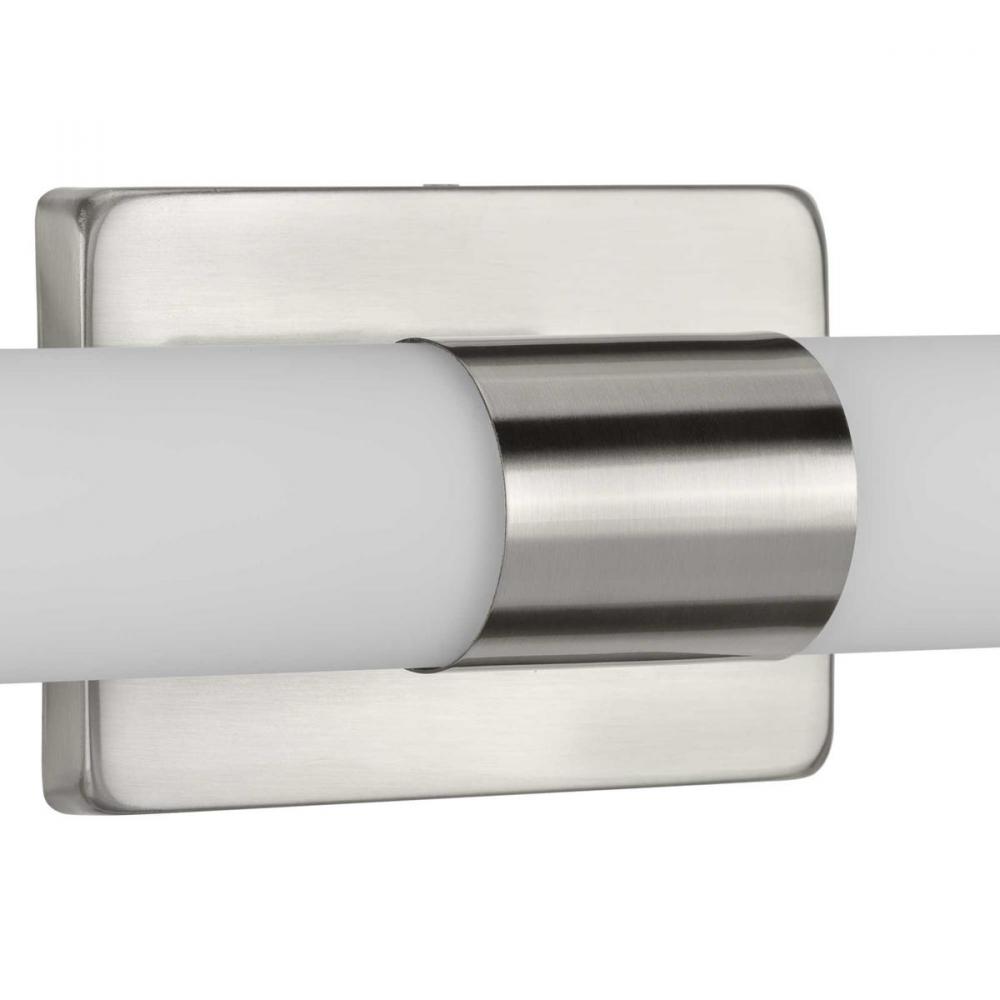 Enjoy This Bath Fixture'S Classic Forms With Crisp, Contemporary Updates. A Silky, Brushed Nickel Finish Coats A Simple Backplate That Anchors The Light Fixture In Place. An Elegant Etched White Glass Shade Shaped In A Thin Cylinder Stretches Horizontally Across The Design For A Clean, Modern Demeanor.