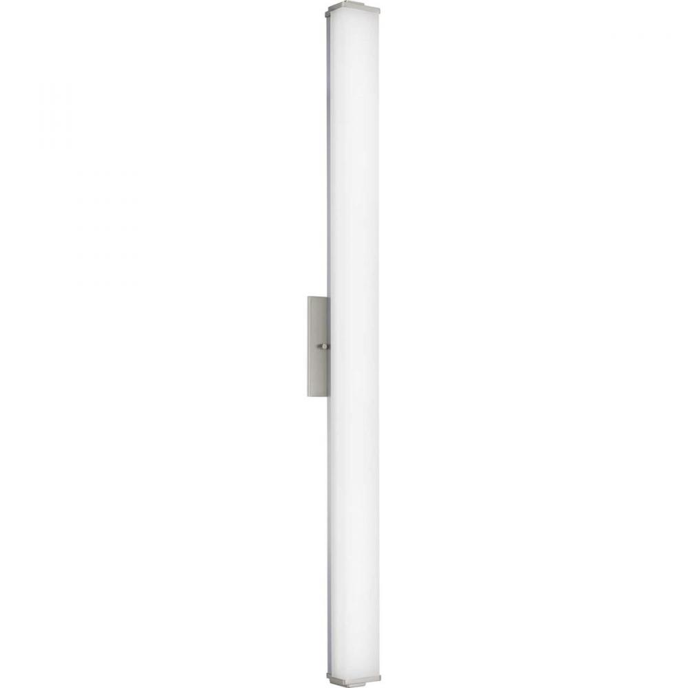Ideal for a bathroom;Perfect for modern style settings;Beautiful brushed nickel finish;Crisp white acrylic shade;Fixture can mount horizontal and vertical;Includes 1 integrated LED (44 W), 3300 lumens, 3000 K, 90 CRI, dimmable;Measures 48-inch width by 4.