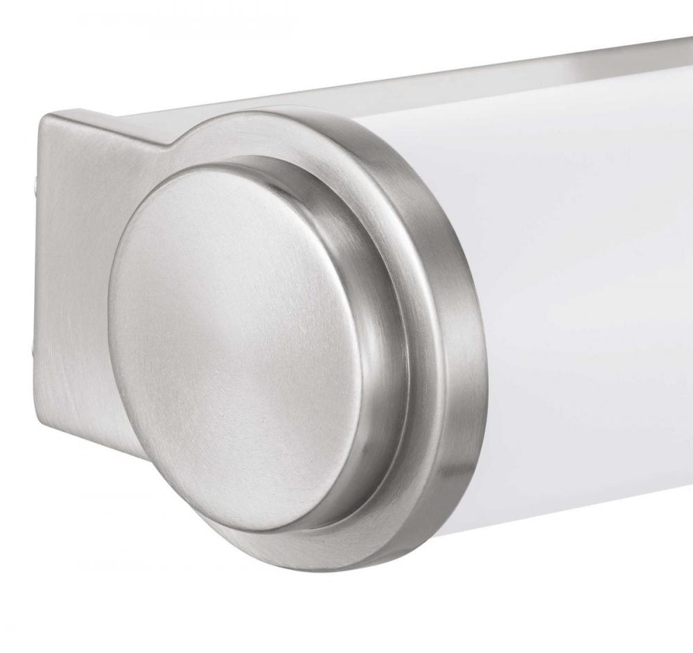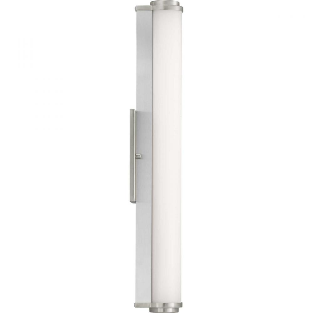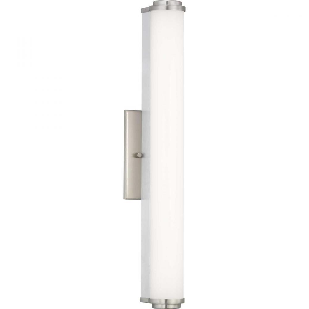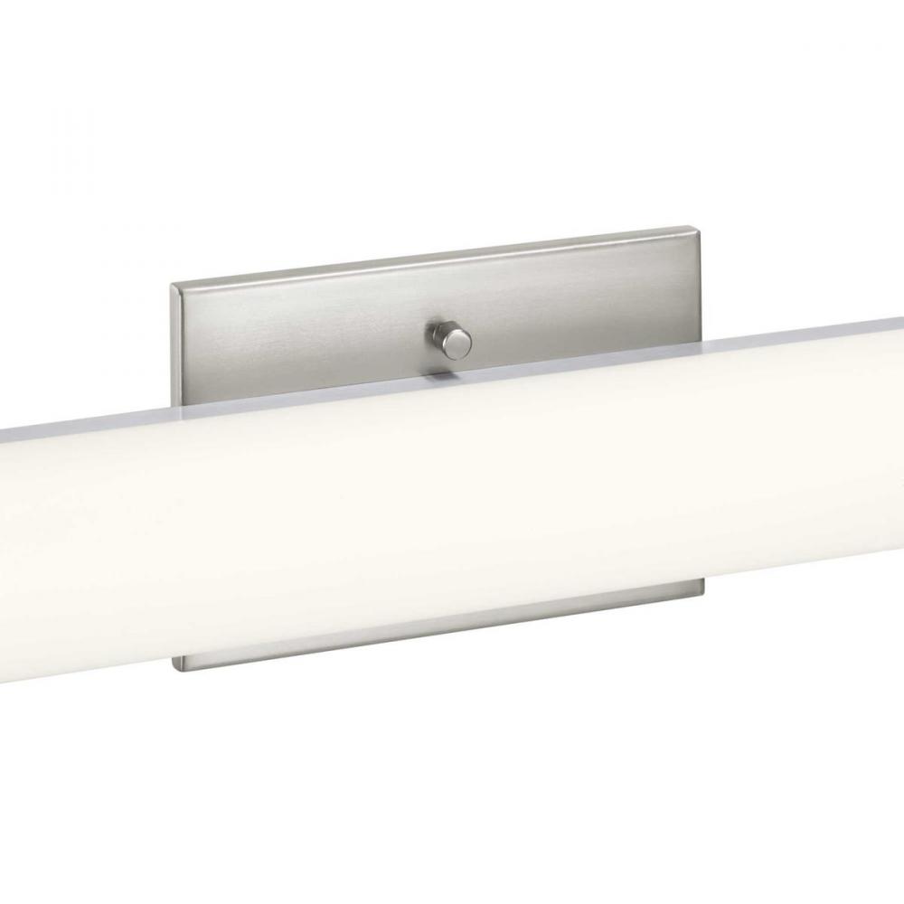 Ideal for a bathroom;Perfect for modern style settings;Beautiful brushed nickel finish;Crisp white acrylic shade;Fixture can mount horizontal and vertical;Includes 1 integrated LED (22 W), 1675 lumens, 3000 K, 90 CRI, dimmable;Measures 24-inch width by 4.