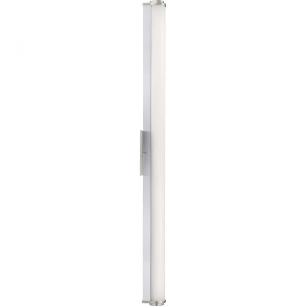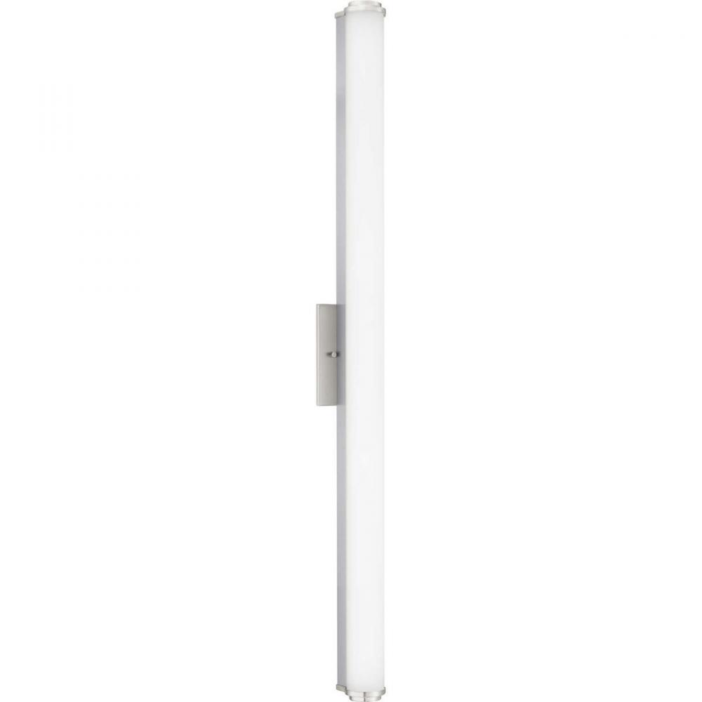 Ideal for a bathroom;Perfect for modern style settings;Beautiful brushed nickel finish;Crisp white acrylic shade;Fixture can mount horizontal and vertical;Includes 1 integrated LED (42 W), 3500 lumens, 3000 K, 90 CRI, dimmable;Measures 48-inch width by 4.