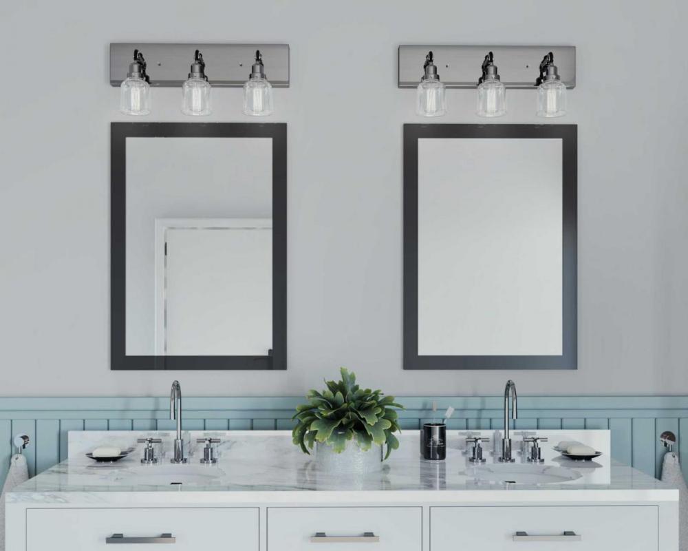bathroom mirror lights;bathroom mirror lighting;bathroom mirror light fixture;industrial lighting fixtures;industrial lighting fixtures bathroom;industrial light fixture bathroom;clear glass light fixture;clear glass lighting fixture;farmhouse bathroom lig