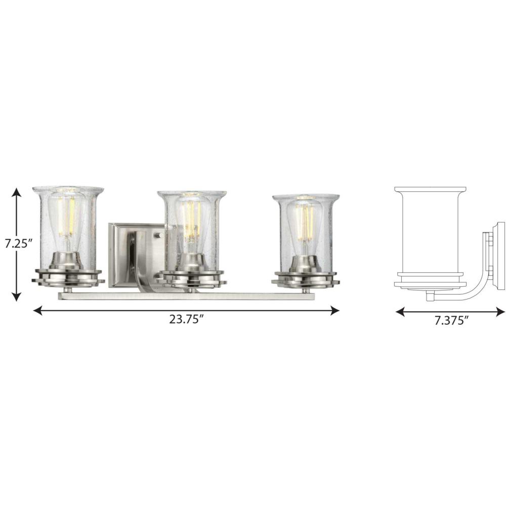 Ideal for a bathroom;Perfect for coastal, farmhouse, rustic, and transitional style settings;Beautiful brushed nickel finish;Rustic clear seeded glass shades;Mount the light fixture facing up or down;Use 3 medium base bulbs that are sold separately (60 W m
