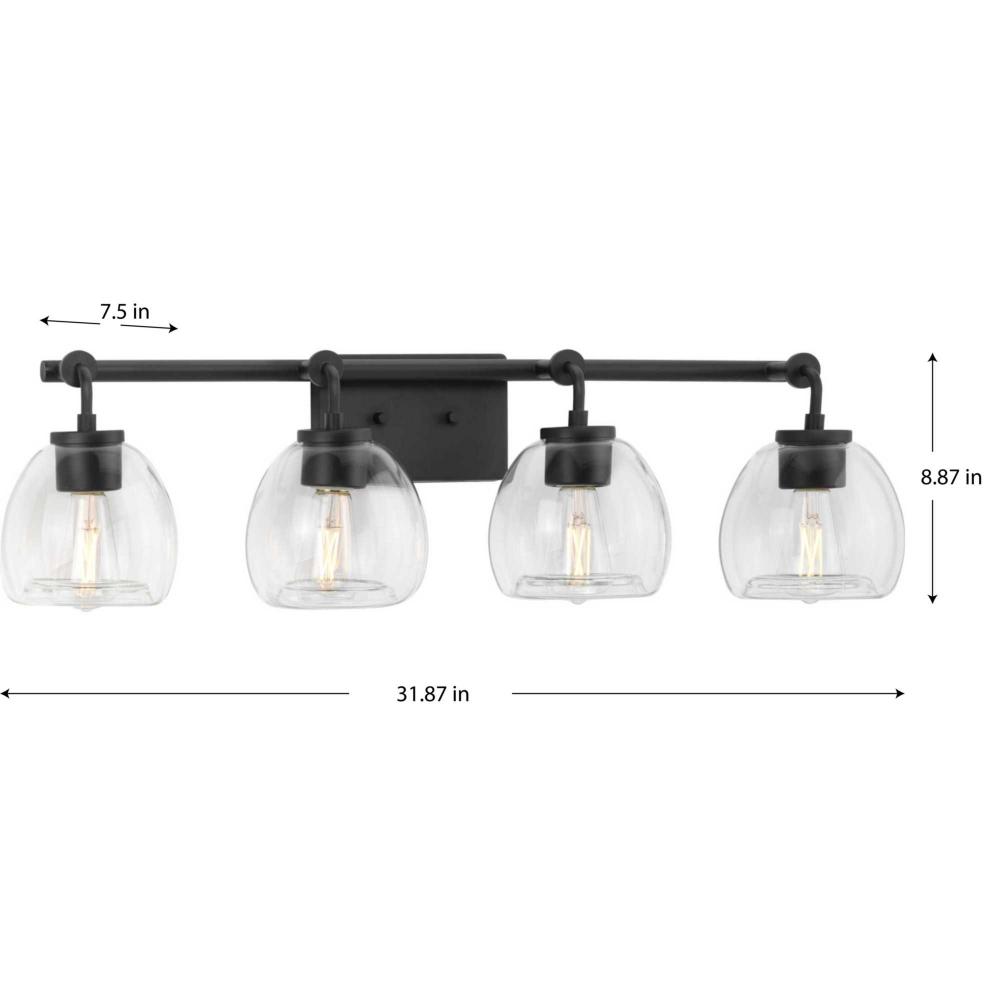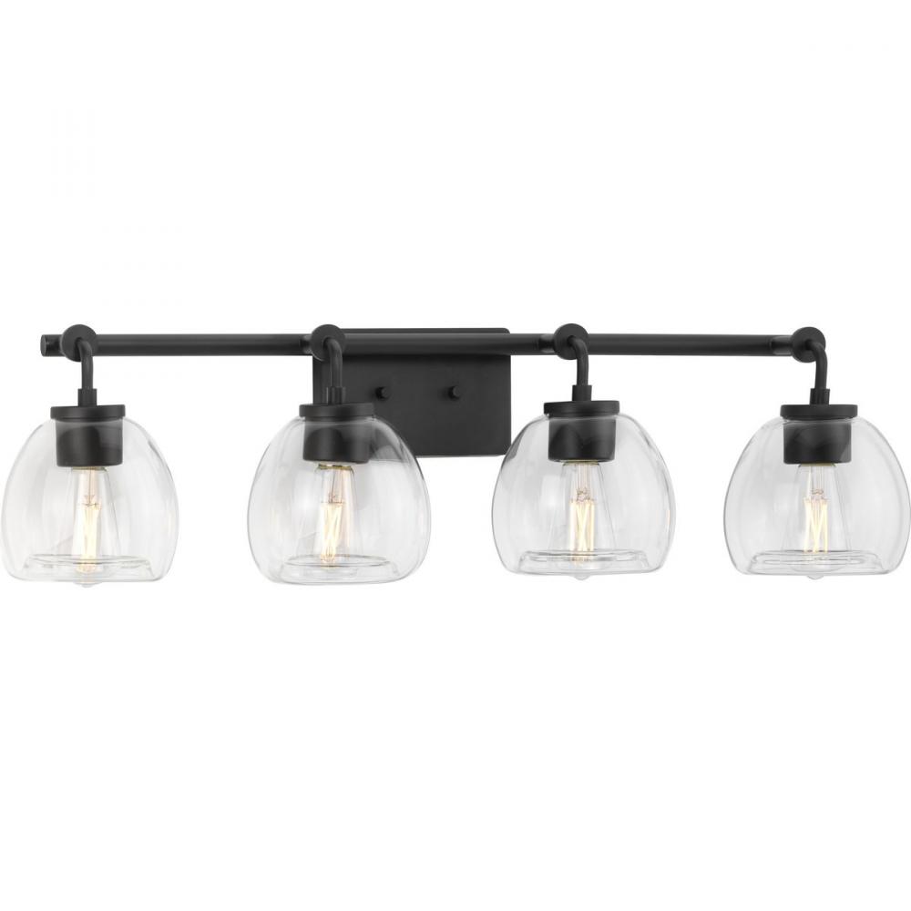 Ideal for a bathroom;Perfect for urban industrial, farmhouse, and rustic style settings;Gorgeous graphite finish;Bell-shaped clear glass;Mount the light fixture facing up or down;Uses 4 medium base base bulbs that are sold separately (60 W max - LED/CFL/in