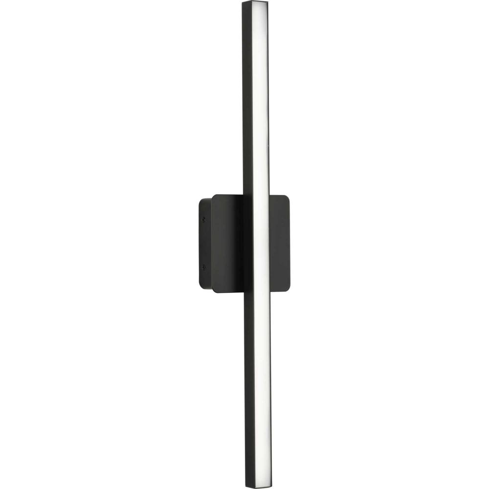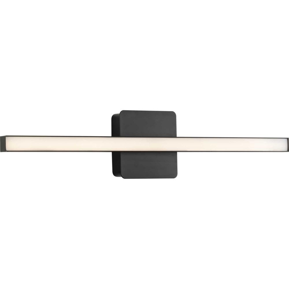 The Phase 4 Collection Medium LED Linear Vanity Light features color selectable technology and a sleek and minimal composition. A smooth square backplate finished in crisp matte black anchors the fixture, supporting a slim rectangular acrylic shade that creates a soft, uniform and energy-efficient light at 3000K, 4000K or 5000K. This versatile luminaire can be mounted as a wall sconce or as a vanity light above sinks and vanities, lending its surroundings a tailored touch. The bath light's versatile design is ideal for any bathroom in contemporary or modern commercial or residential settings. Progress Lighting products are designed for exceptional quality, reliability, and functionality.